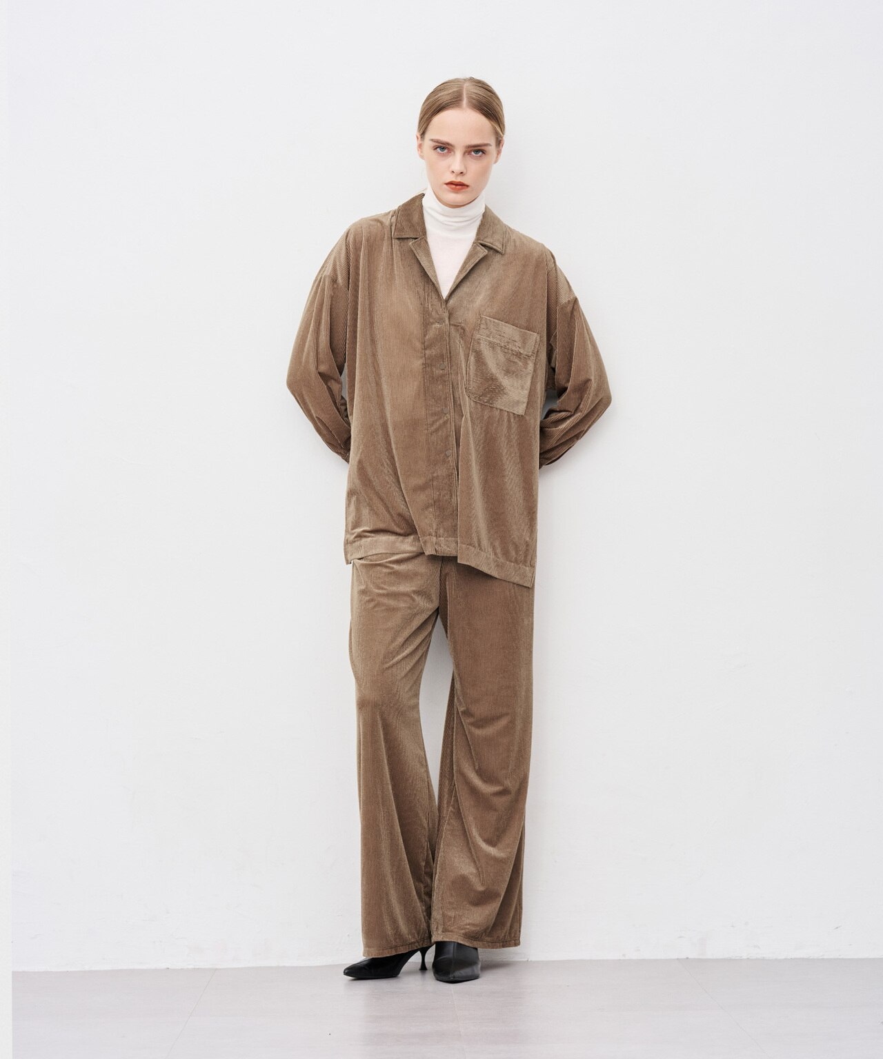 落ち感のある風合いとベロアの柔らかい毛並みが他にはない表情を生み出している素材です。