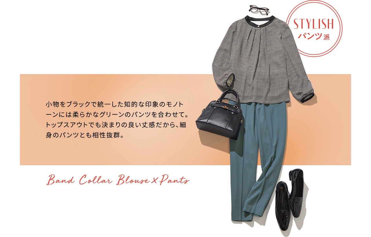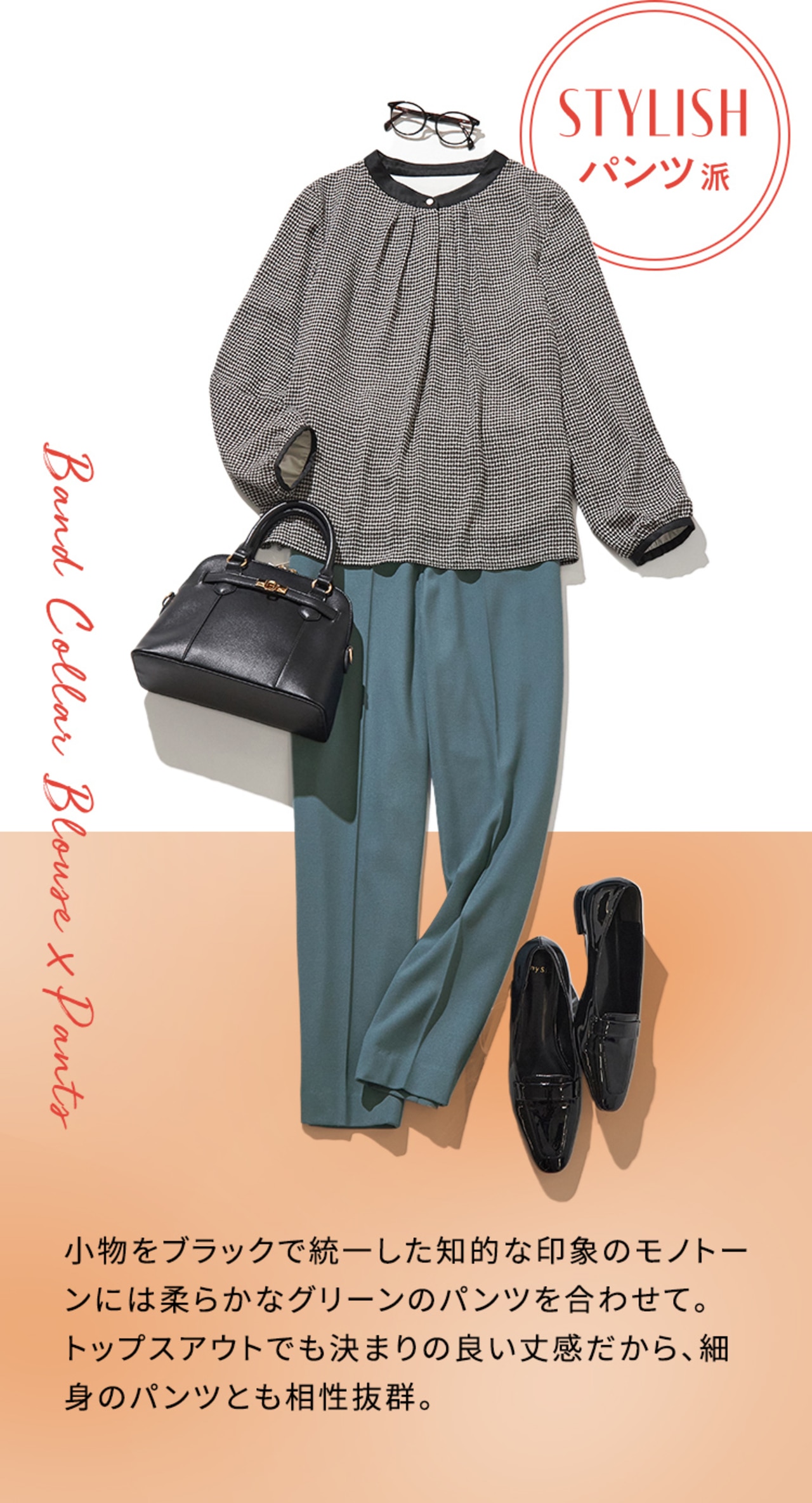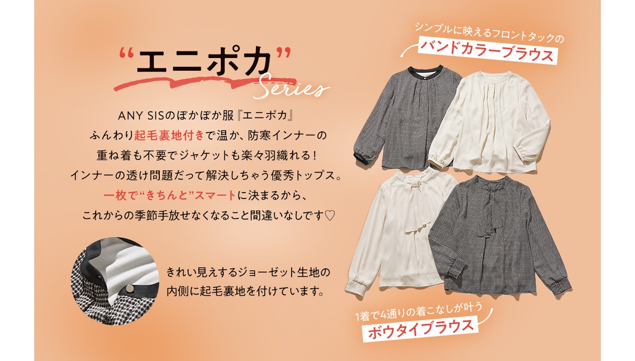 肌寒い時期も一着であたたかさを実感できる“エニポカ”ブラウス。着心地もさることながら、お仕事シーンでの着回し力も実力の一つ!