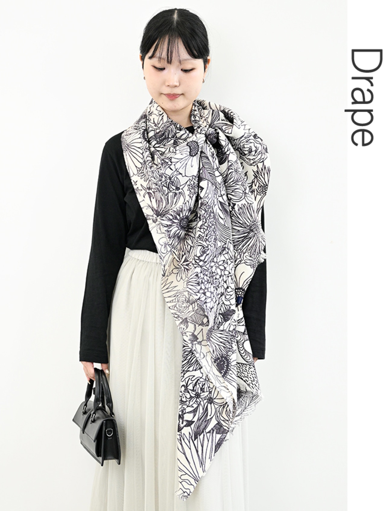 ストール中央部に結び目を作り、首に巻きつける「ドレープ結び」【シルクウール混】U-conic black ストール【シルクウール混】U-conic black ストールmuto¥17,600(税込) -
