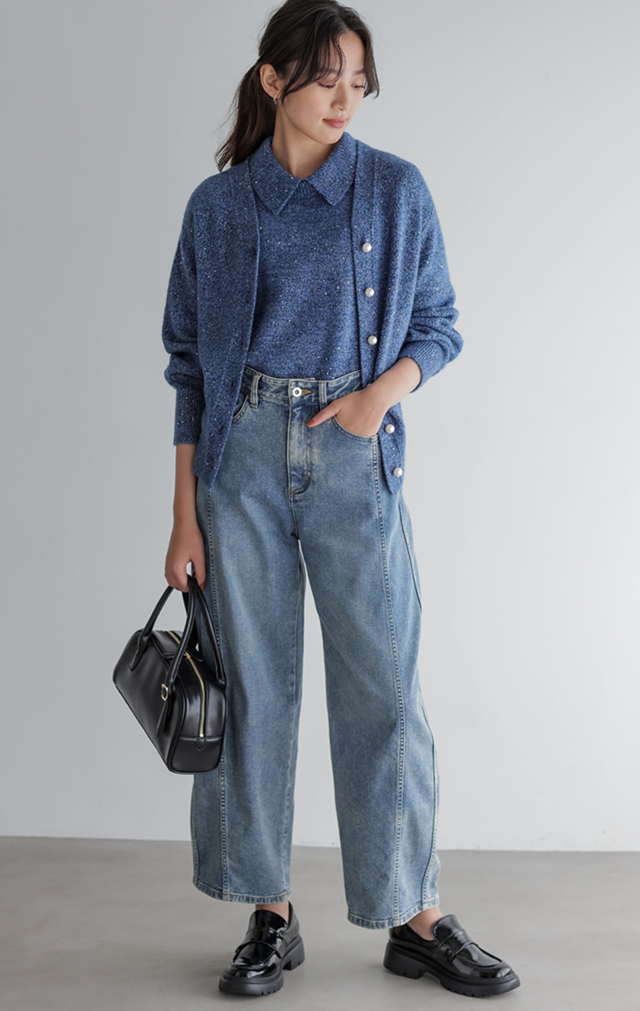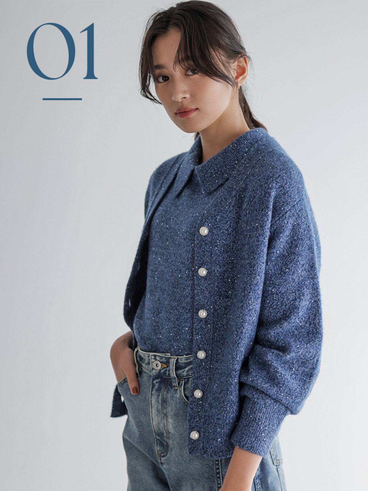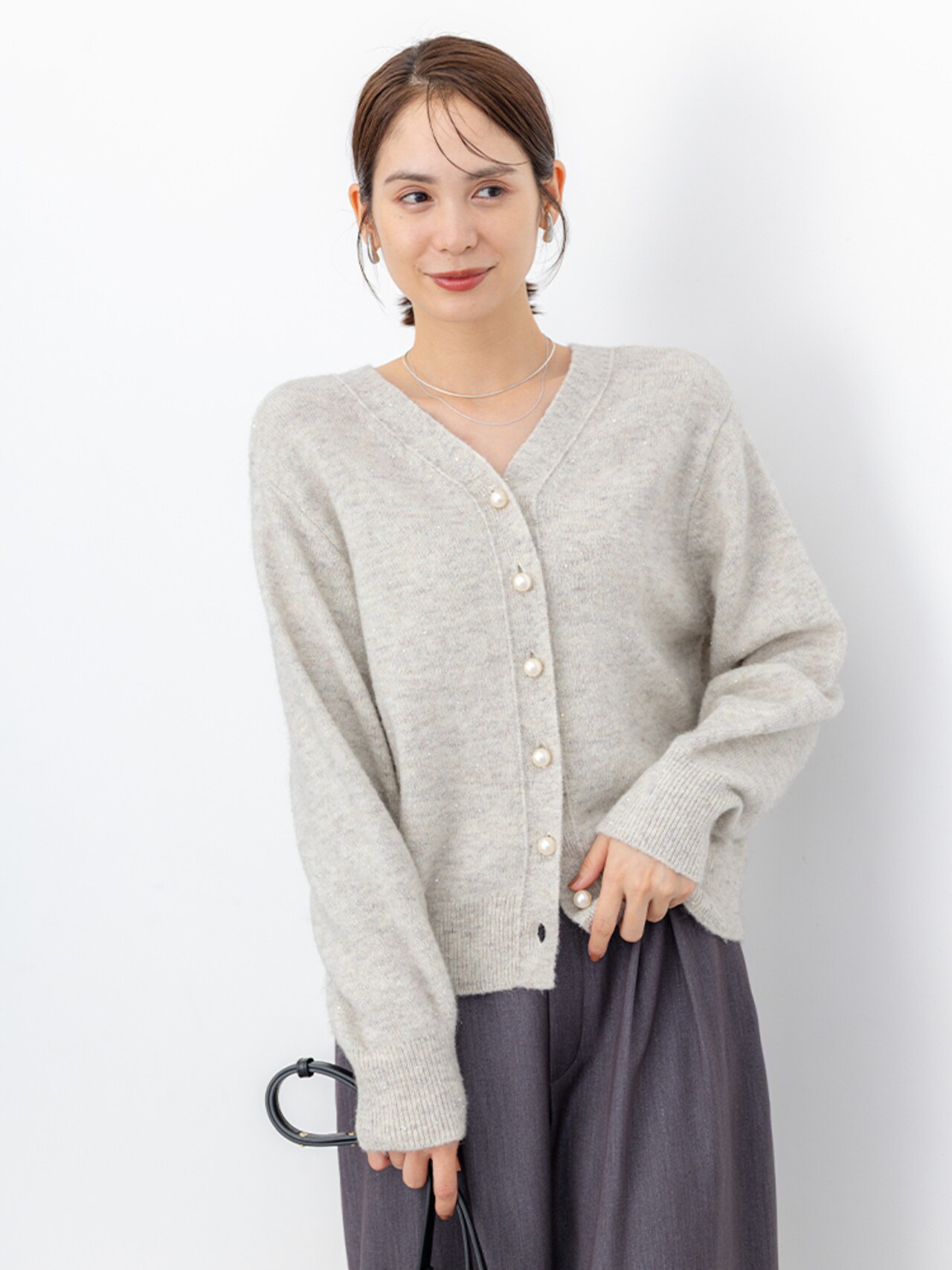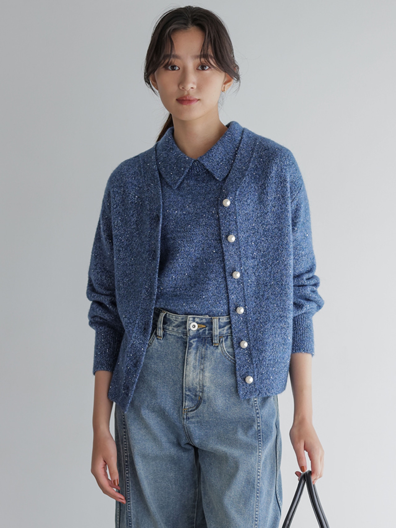 パールボタンとスパンコールのきらめきで盛れるカーディガン