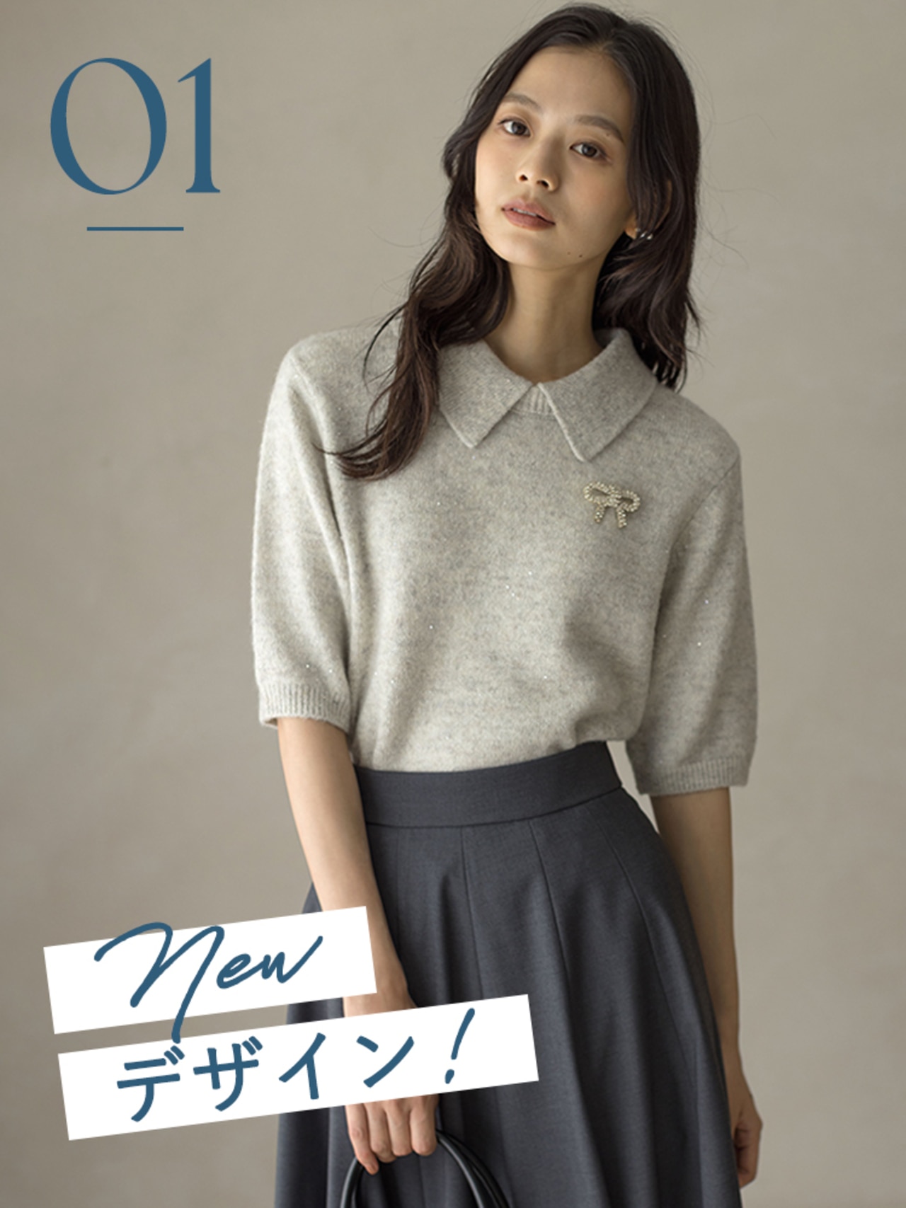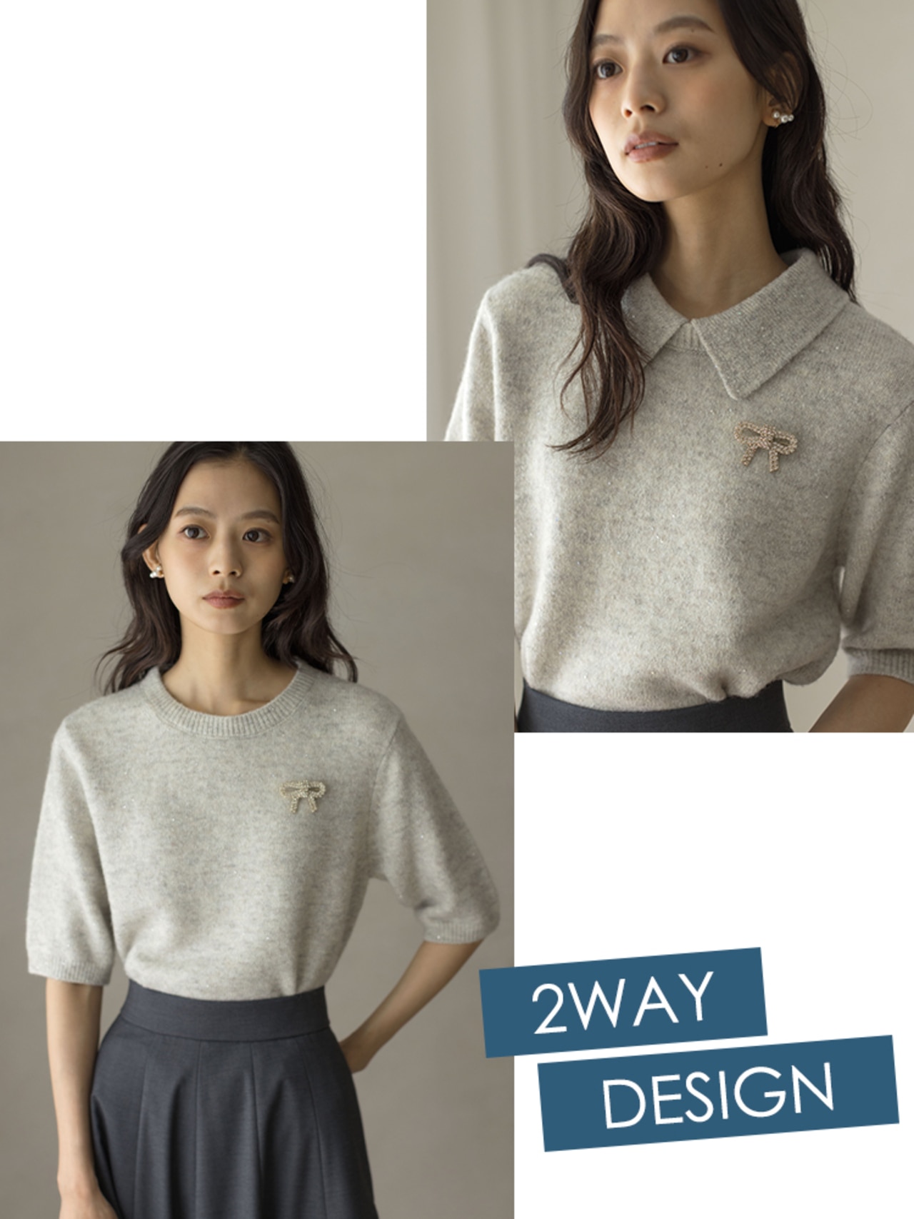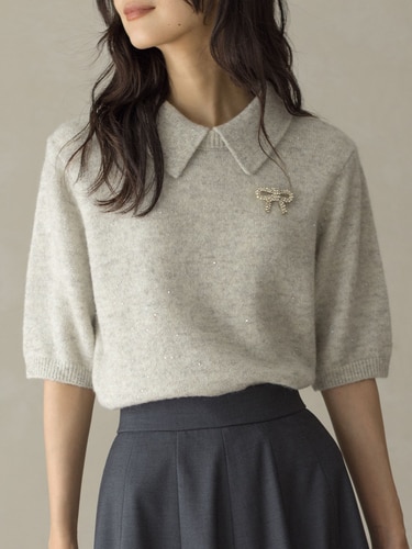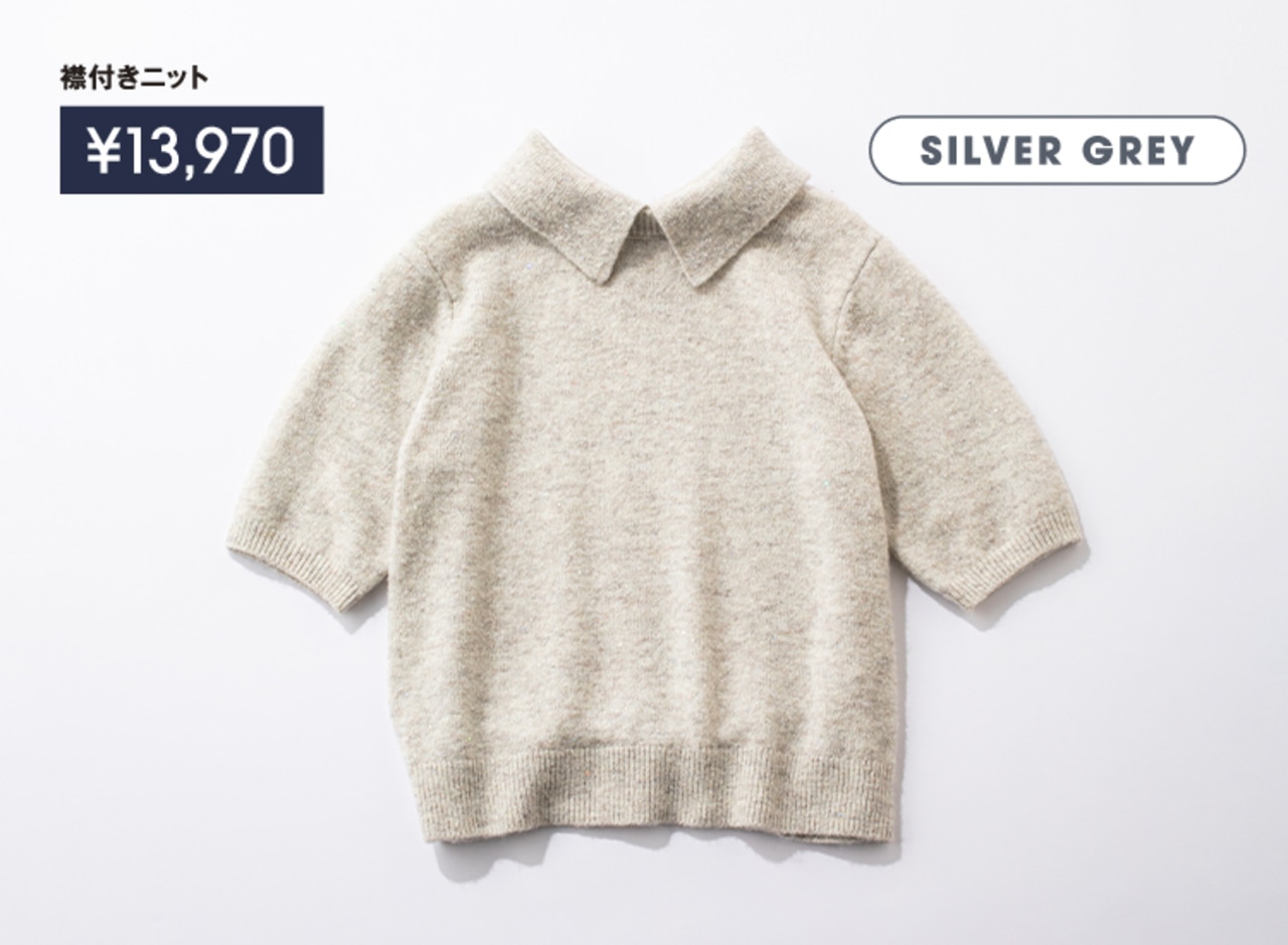 取り外せる襟付きで着こなし自在な5分袖ニット