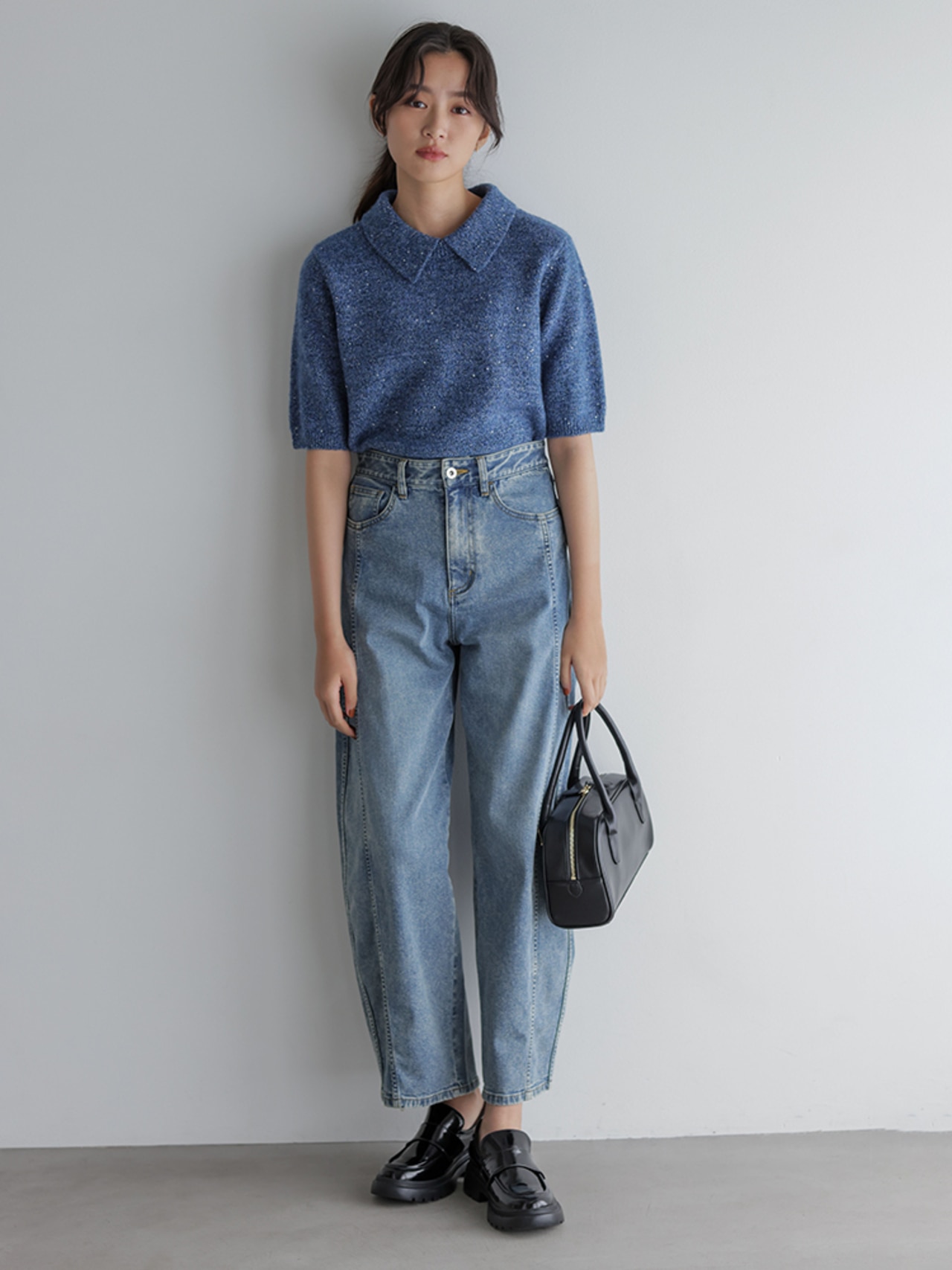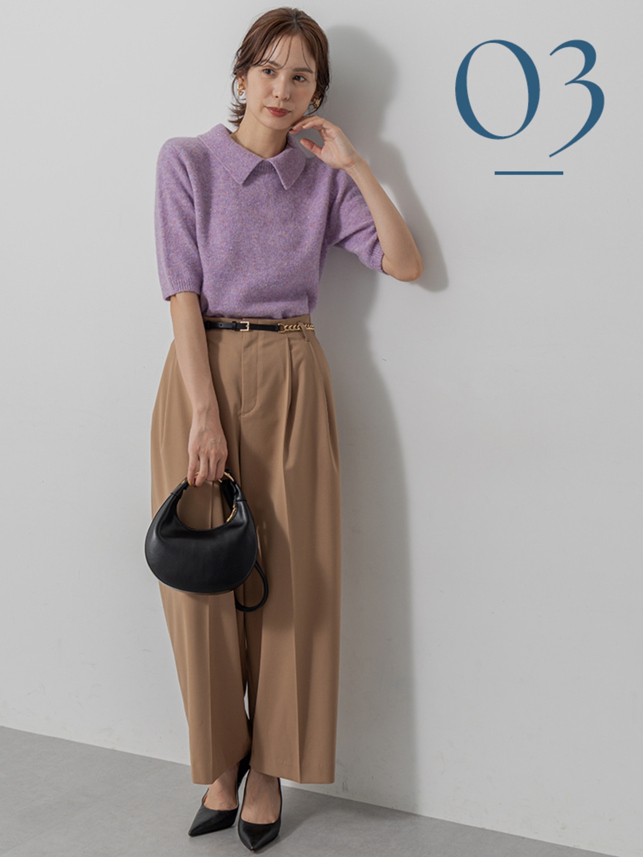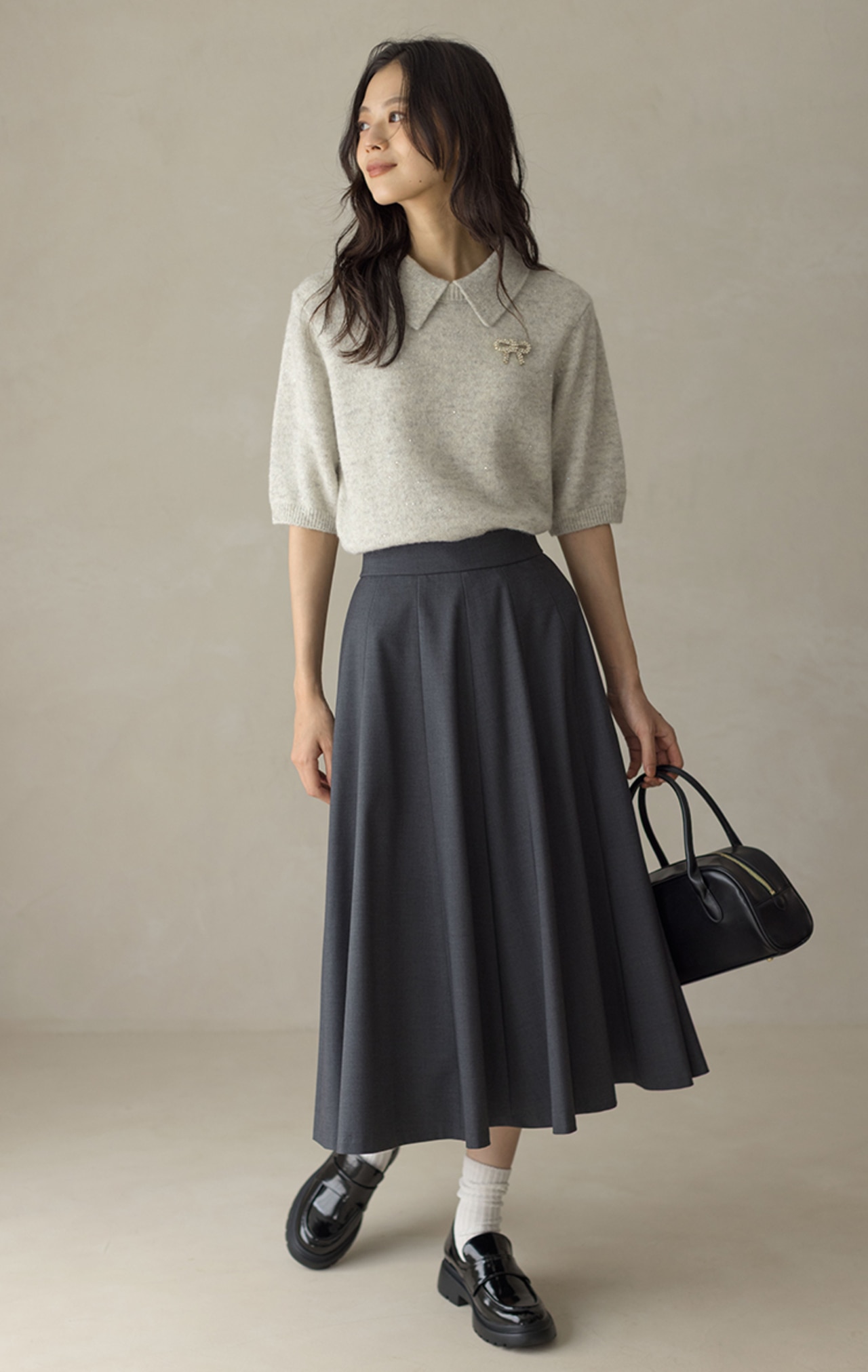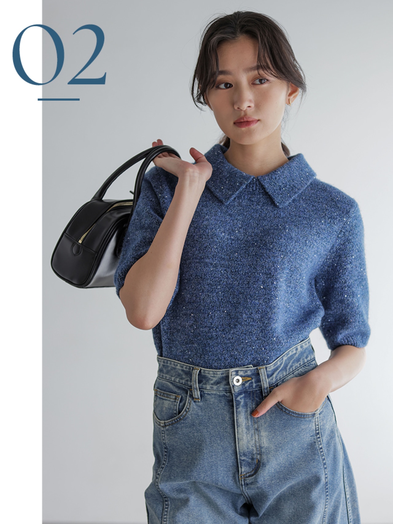 取り外せる襟付きで着こなし自在な5分袖ニット