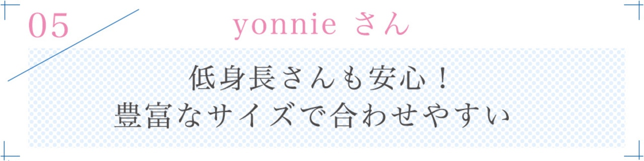サイズ豊富なので、なりたいイメージとぴったりの一着が 見つかるのが嬉しい。
