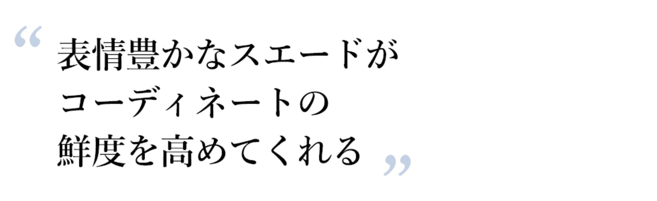 締め色で引き締めるのではなく、トレンド素材でこなれさせるのが今っぽい。