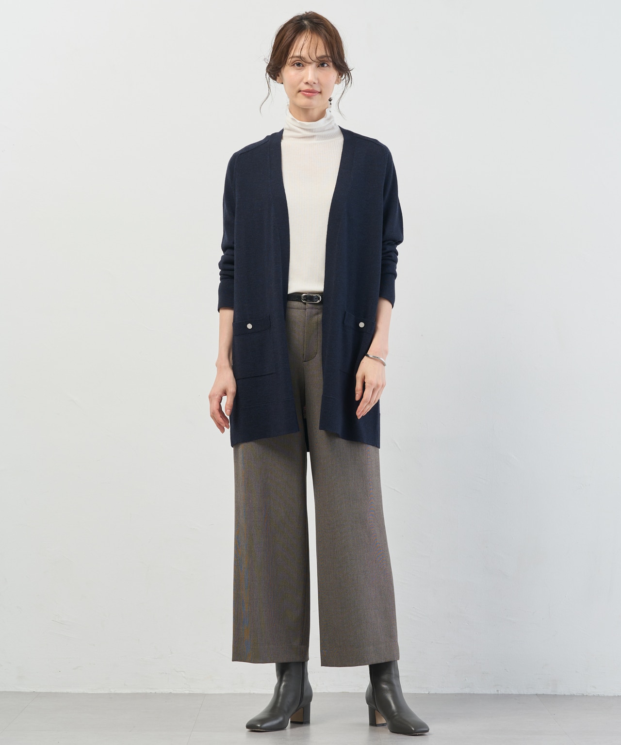 ウエストゴムのイージーさを感じさせない凛とした佇まいも魅力。