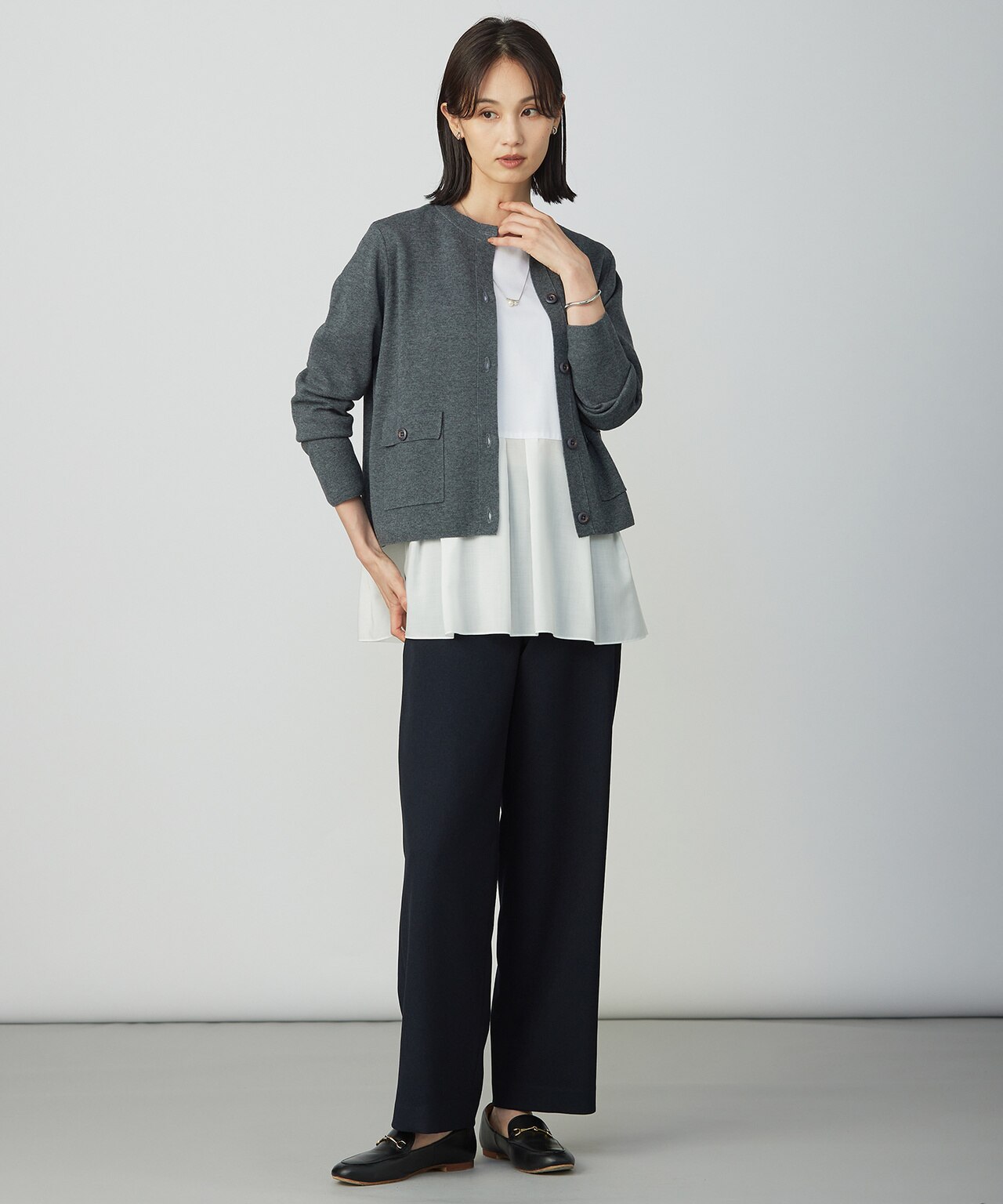 美シルエットを叶えてくれる王道のストレートパンツは、きれいめな印象でお仕事シーンにも◎。