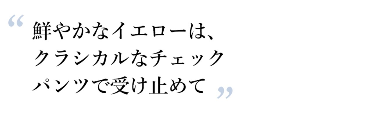 イエローのニットを合わせて、一歩先ゆく上級配色を楽しんで。