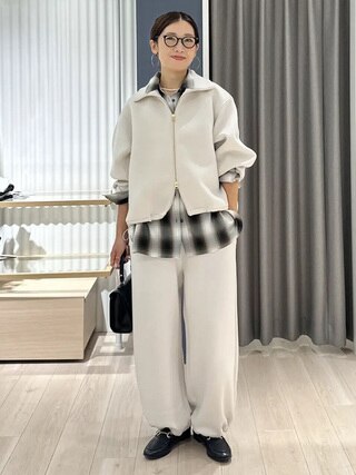 アレンジ次第で普段のカジュアルスタイルも、抜け感のあるこなれた雰囲気に!大きめのスタンドカラーを立てることで小顔効果も◎