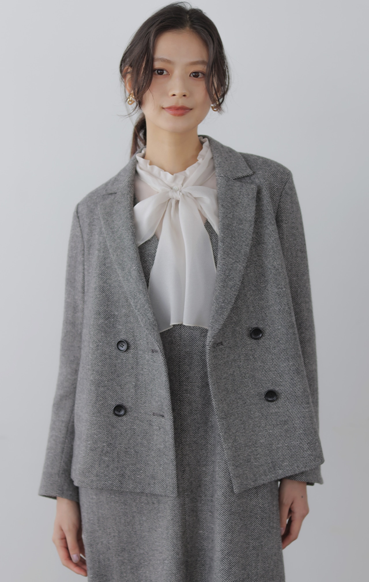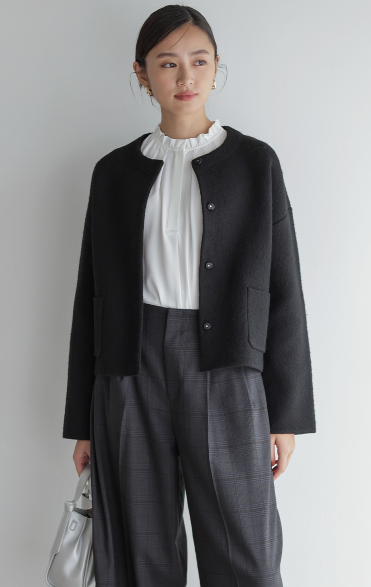 ウール高混率のこだわり素材を使用したツイードジャケット。きちんと見えする適度な分量感のAラインシルエット。通勤からお出かけまでシーンを選ばないアイテムです。