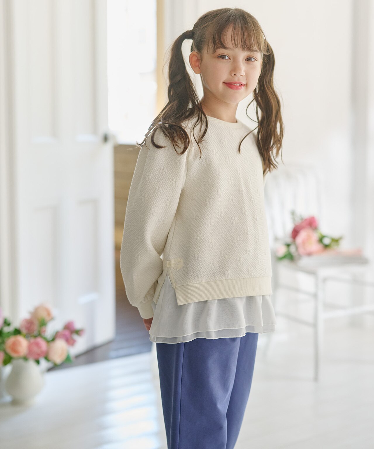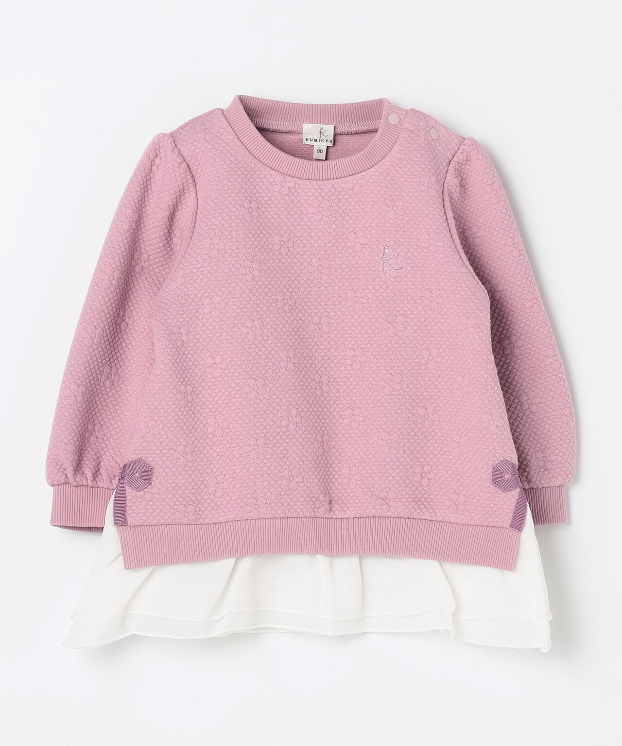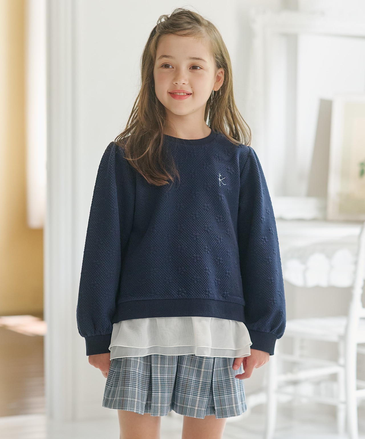 お花柄を散りばめたオリジナルのキルト柄がポイントのジャガード素材を使用したトレーナーです。