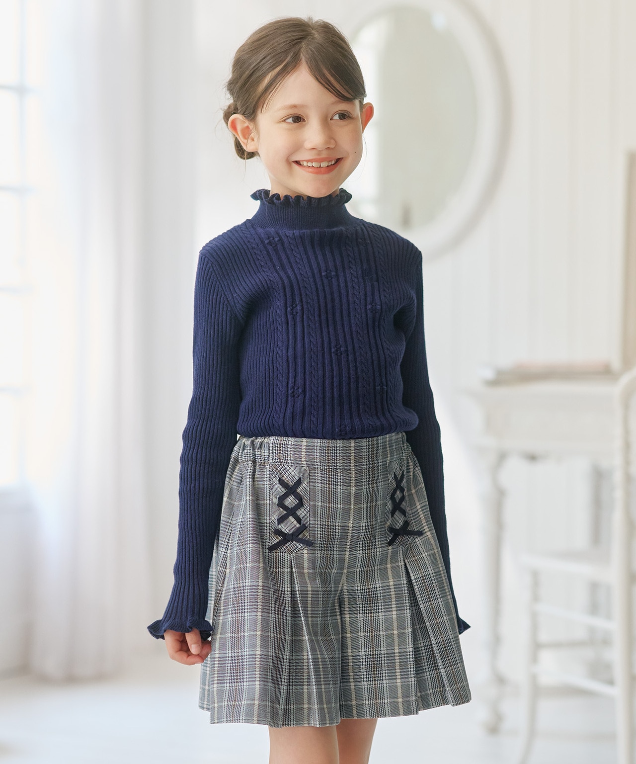 一見スカート見えのように見えながらも、実は動きやすいパンツ仕様なので、元気に走り回っても安心です。