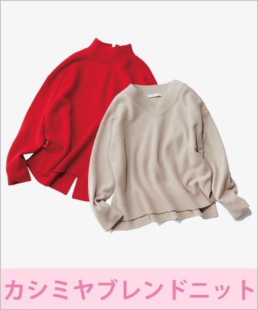 【洗える】カシミヤブレンド ハイネックニット