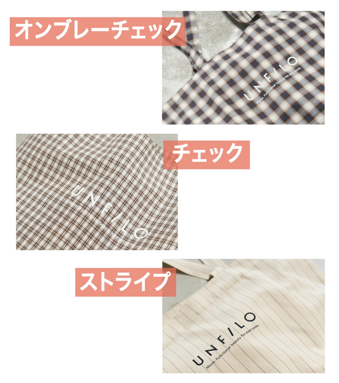 「オンブレーチェック」、「チェック」、「ストライプ」の3色をご用意。