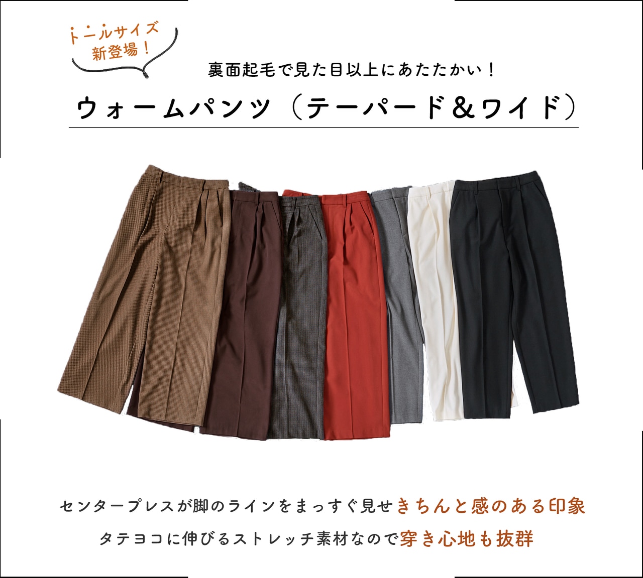 テーパードはすっきり美脚見せ、ワイドは2タックの立体感のある上品シルエットがポイント。どちらもリントラク加工でセンタープレスが長持ち。通勤にもデイリーにも活躍する万能パンツです。