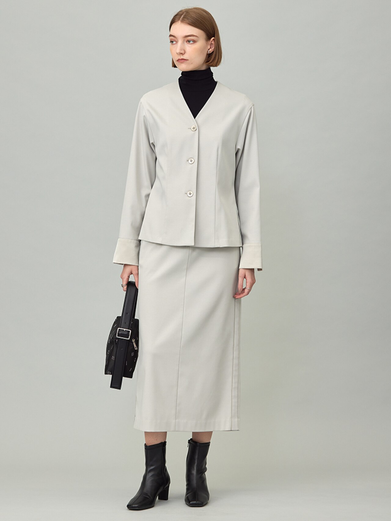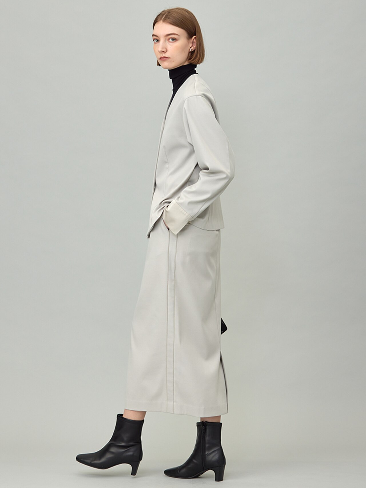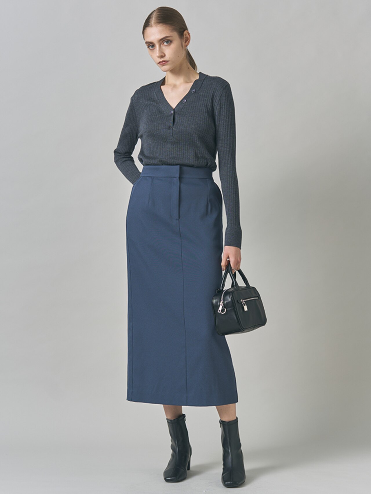 シンプルでありながら、両サイドにラインディティールを効かせたIラインスカート。