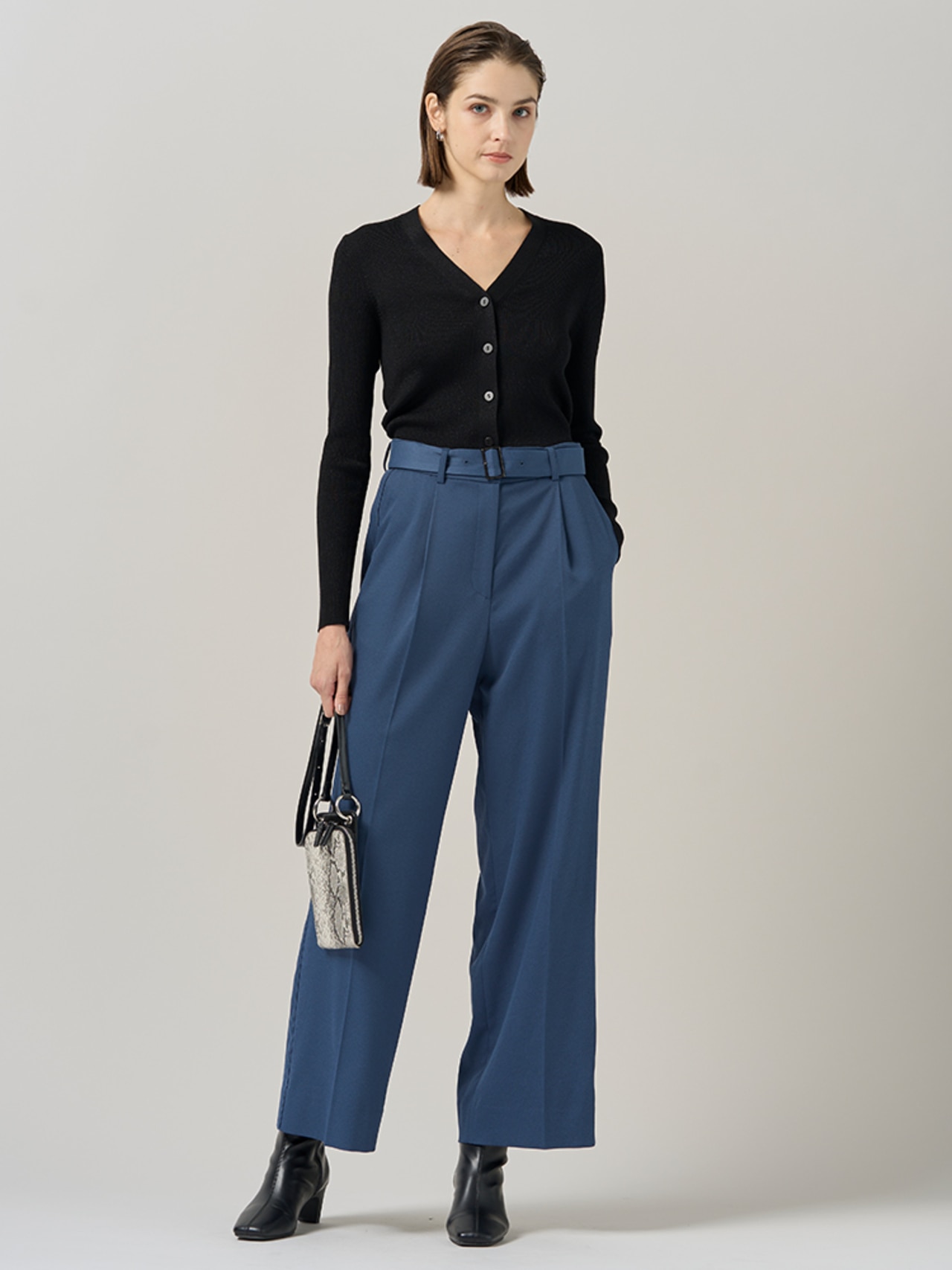附属のベルトはスタイリングのアクセントにもなり、ウエスト部分はゴム内蔵のスマートバック仕様で、楽な着心地もポイントです。