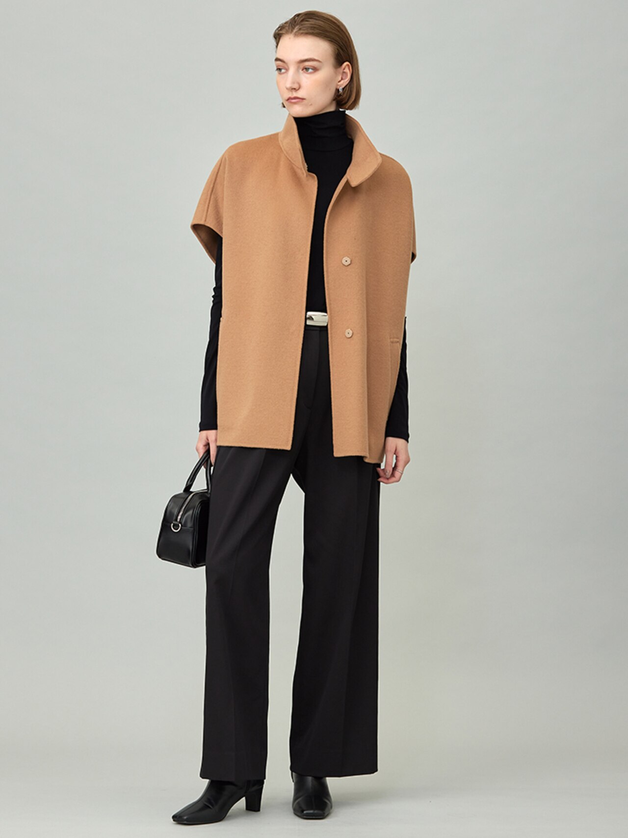 寒い時期にはタートルネックのトップスをインナーにしてもOK。