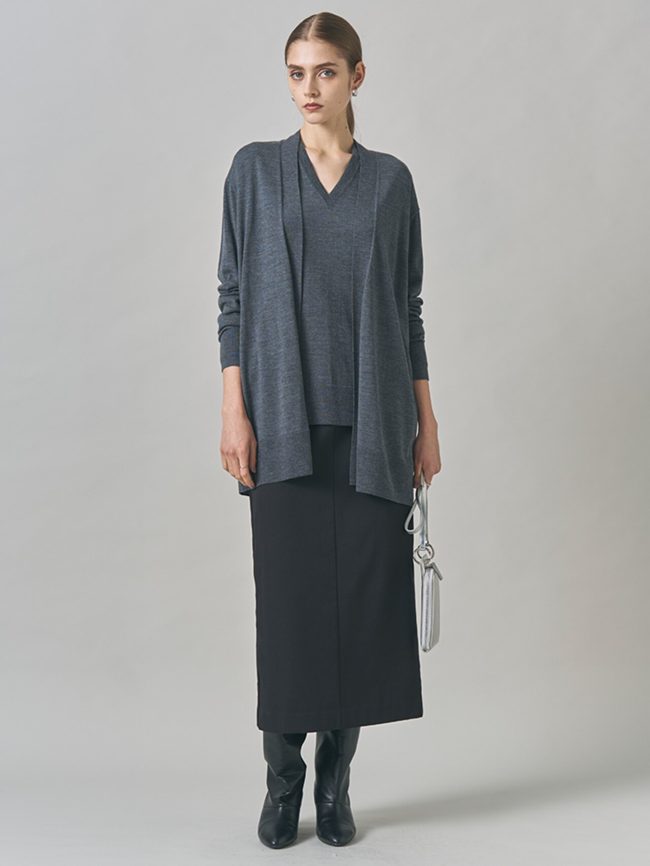釦を閉めてブラウスとしても、釦を開けてカーディガンとしても着て頂け、1枚で着こなしの幅が広がります。