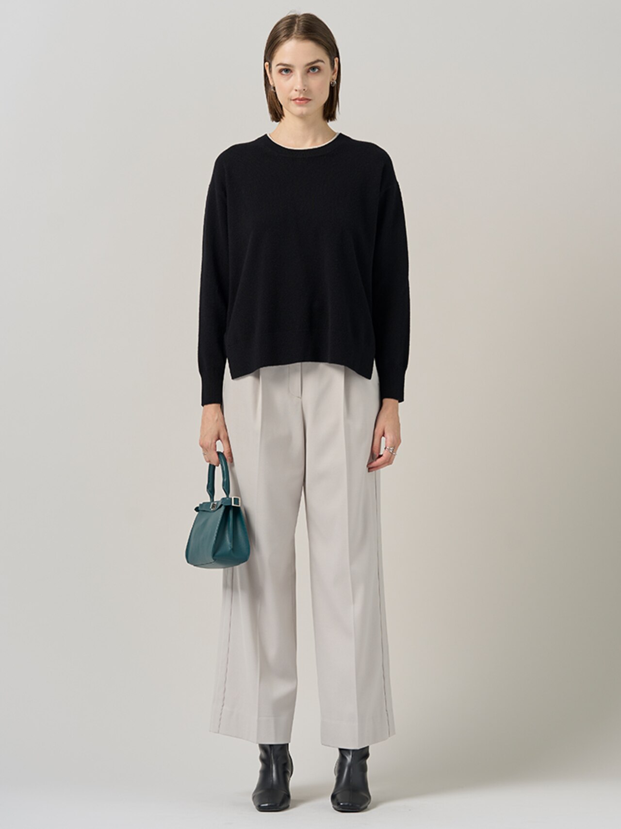 両サイドにラインディティールを効かせたワイドストレートパンツ。
