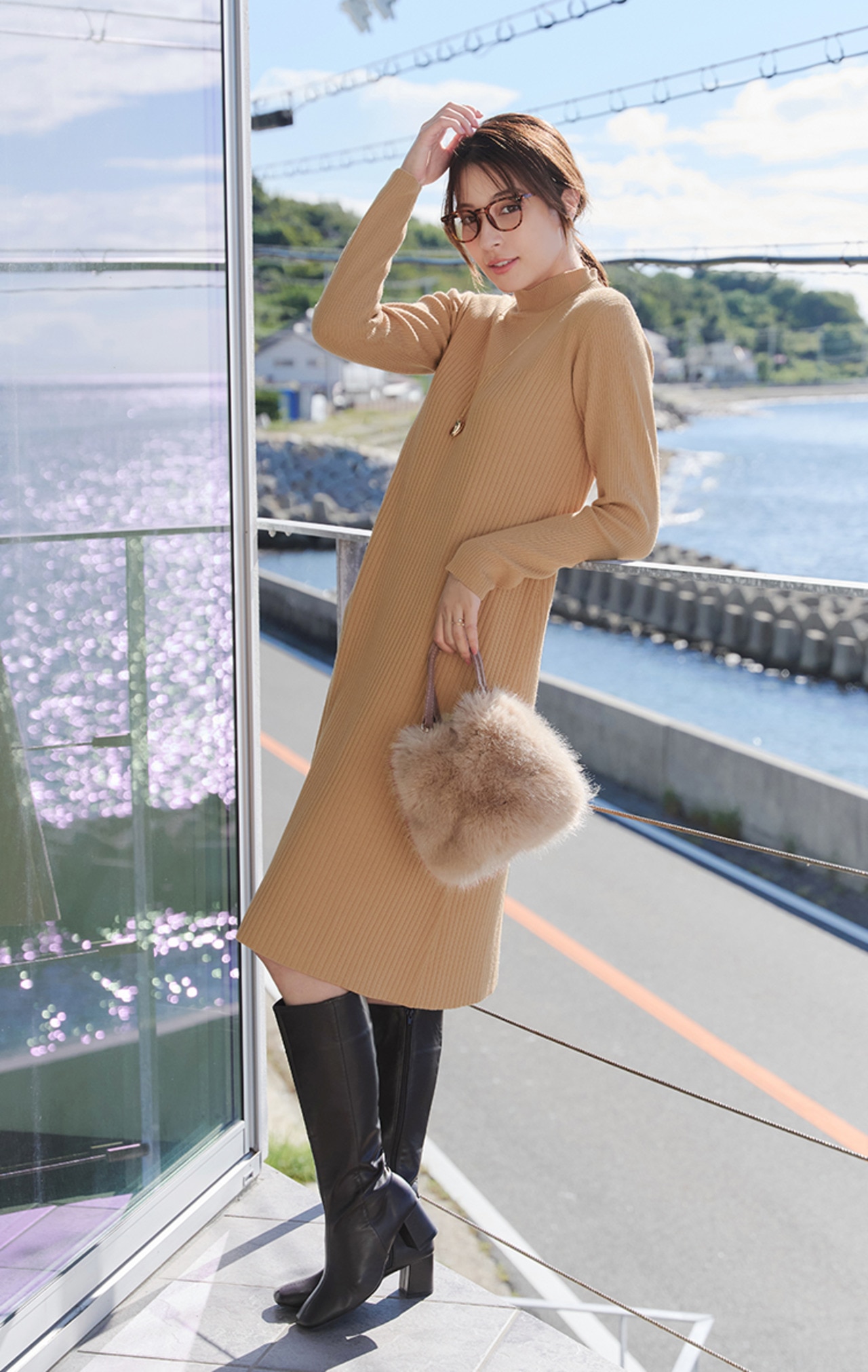 これからの時期は定番のニットワンピースでおしゃれにおでかけ!カジュアルな中にも女性らしさを感じる、コンパクトな絶妙シルエット。リブ編みで縦ラインを強調し、すっきり華奢見えを叶えてくれます。膝下丈でパンツとも好相性。着回し力の高い万能アイテムです。
