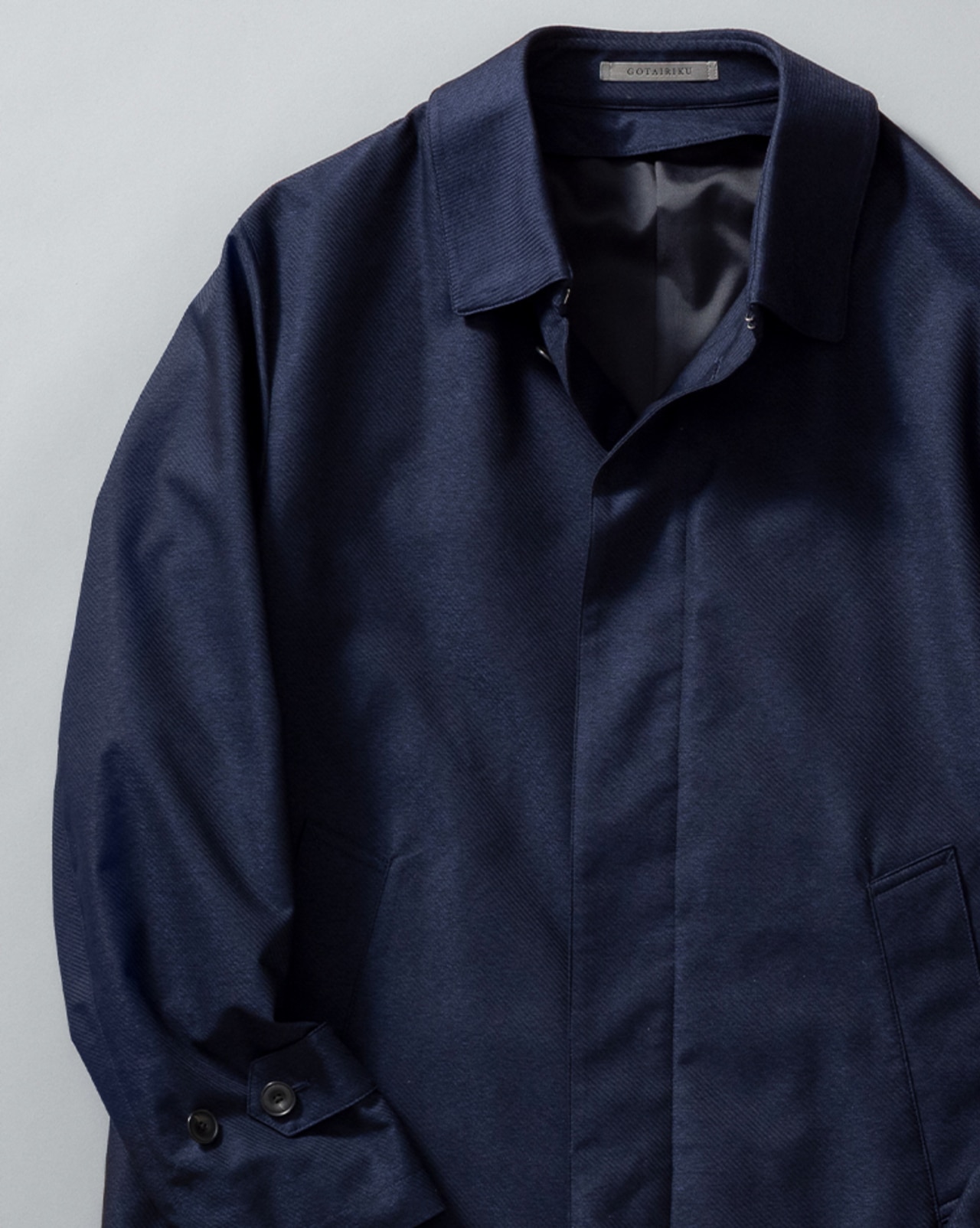 五大陸では撥水加工と生地の裏側に、防風のラミネートを接着することでコートに仕立てました。