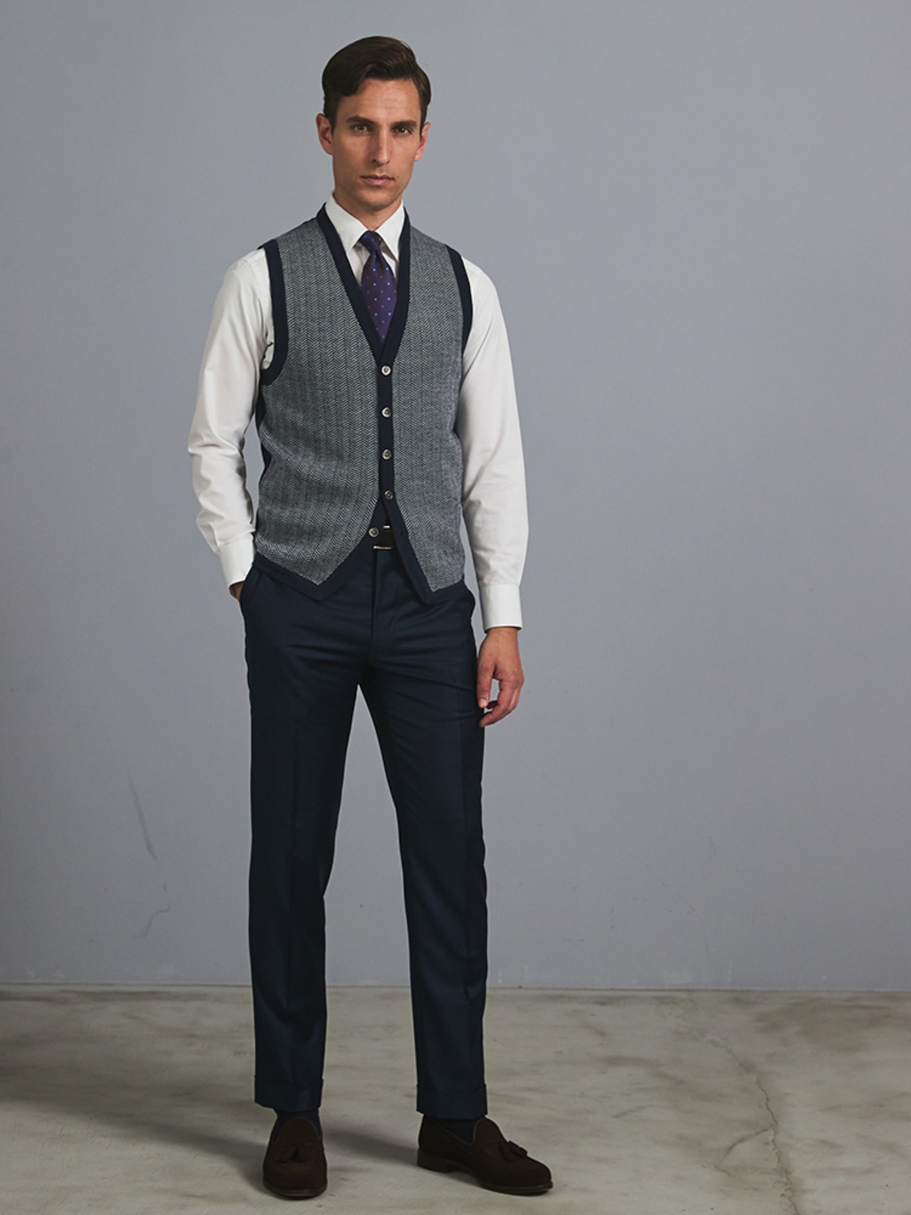 よく見ると複雑なヘリンボーン柄で、シンプルなデザインのアクセントになっています。