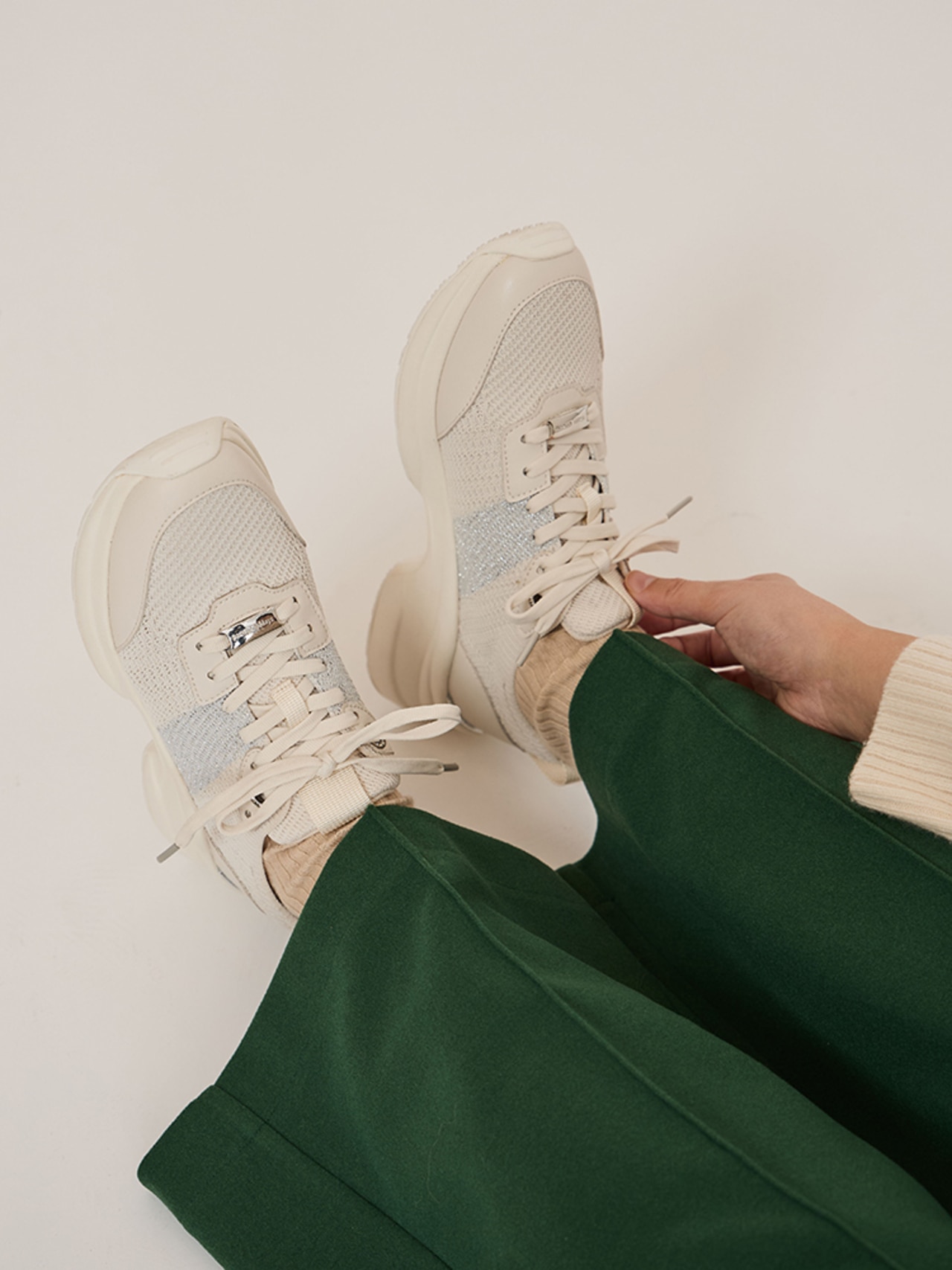 - 【撥水/洗える】ボリュームソール ビジュースニーカー/steppi