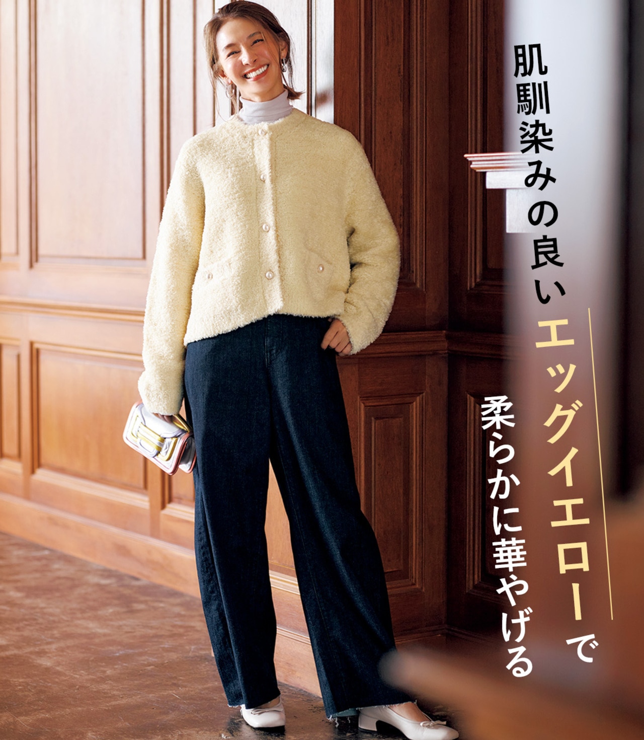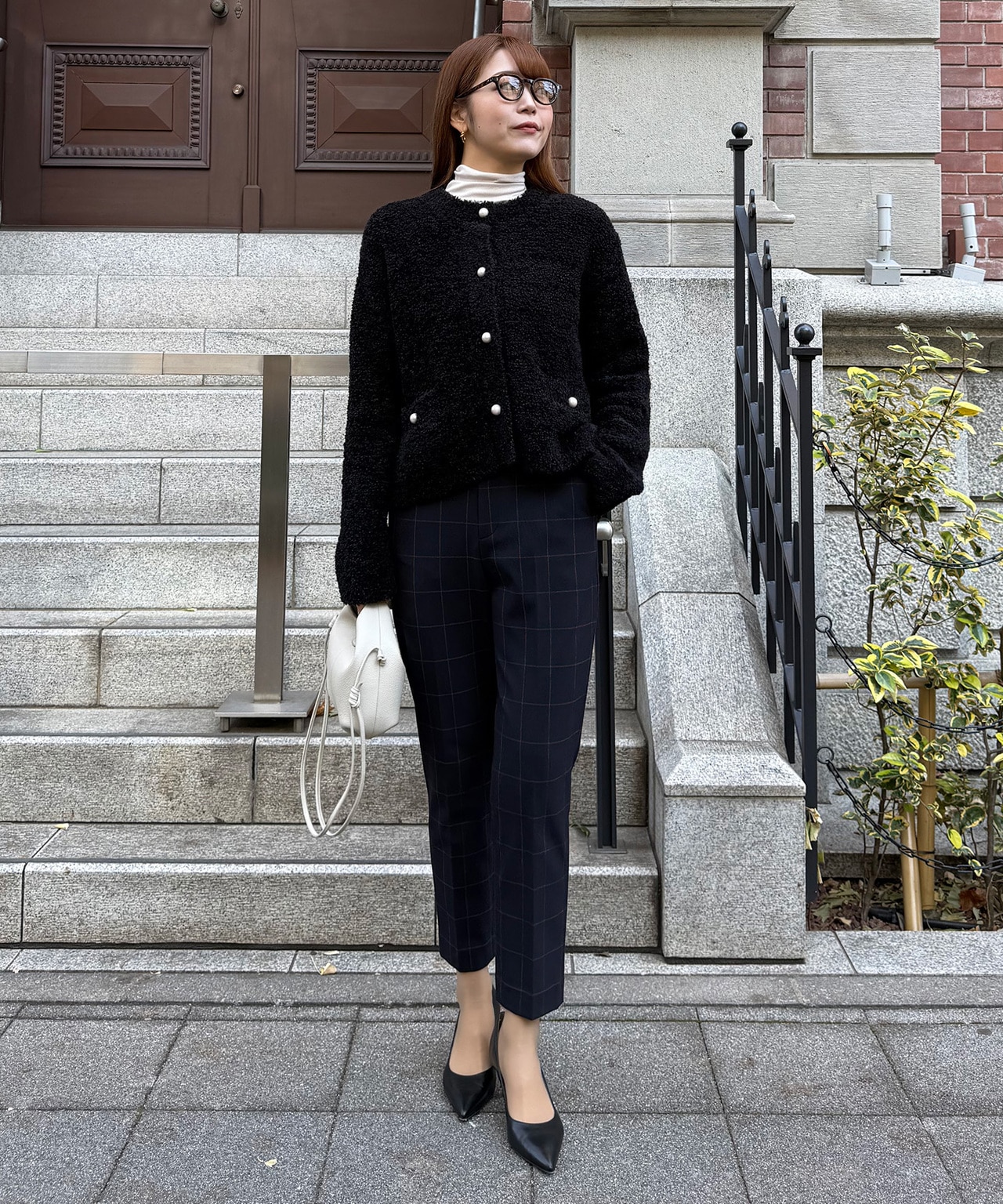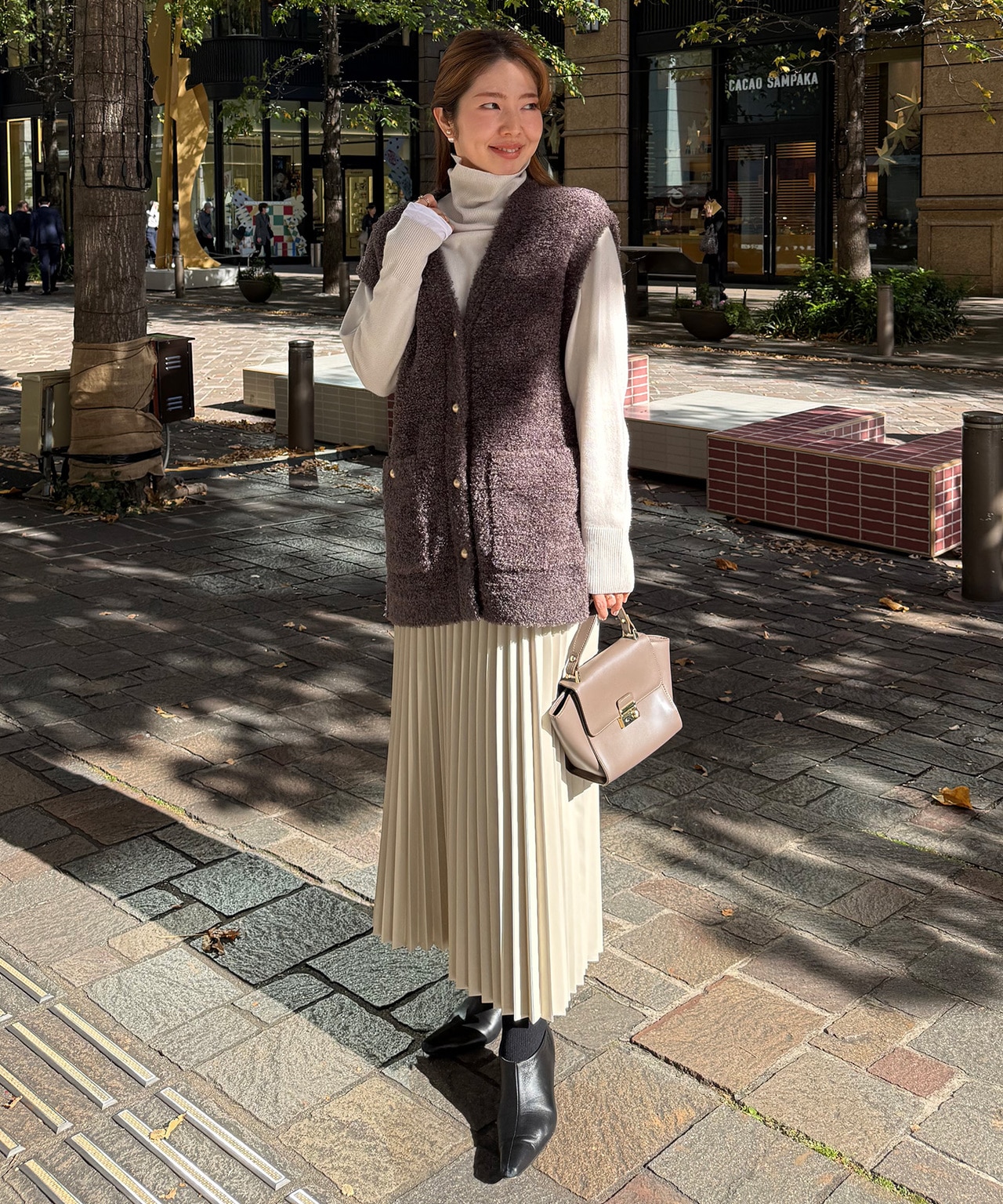 シックになりがちな冬コーデも、シャギー素材で柔らかに華やぎます。
