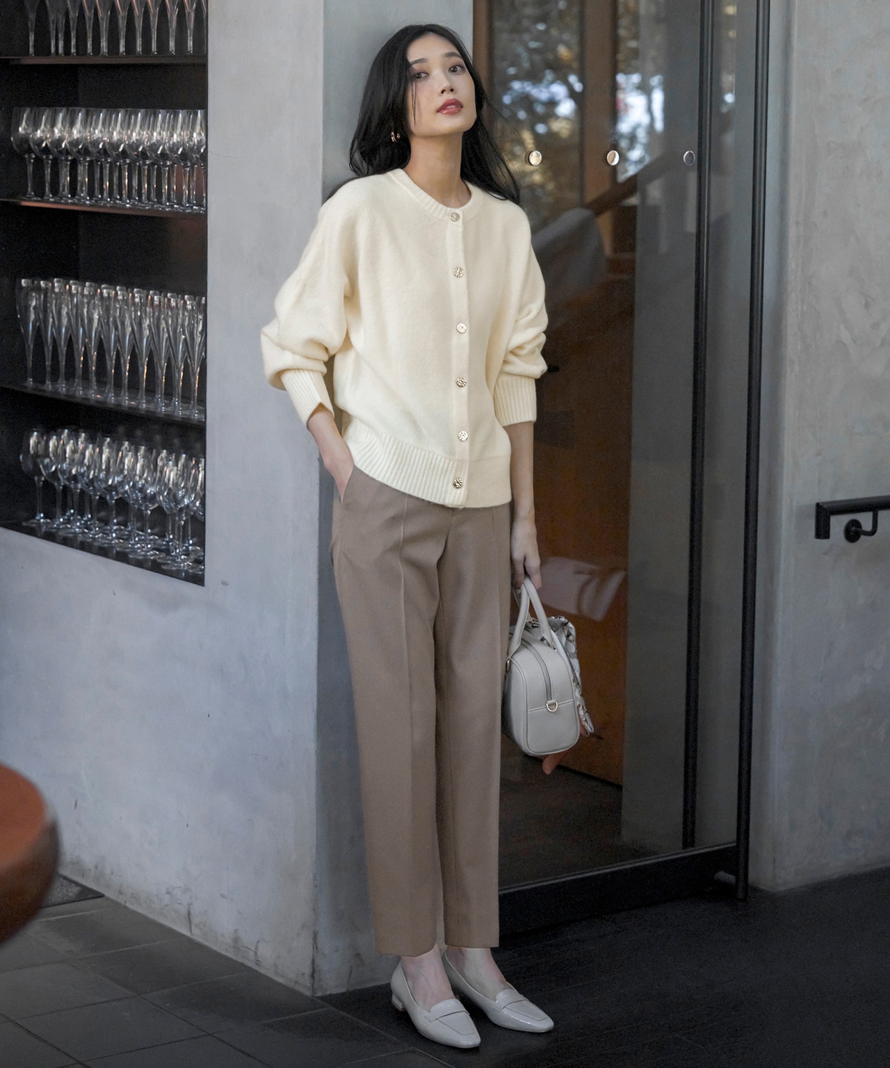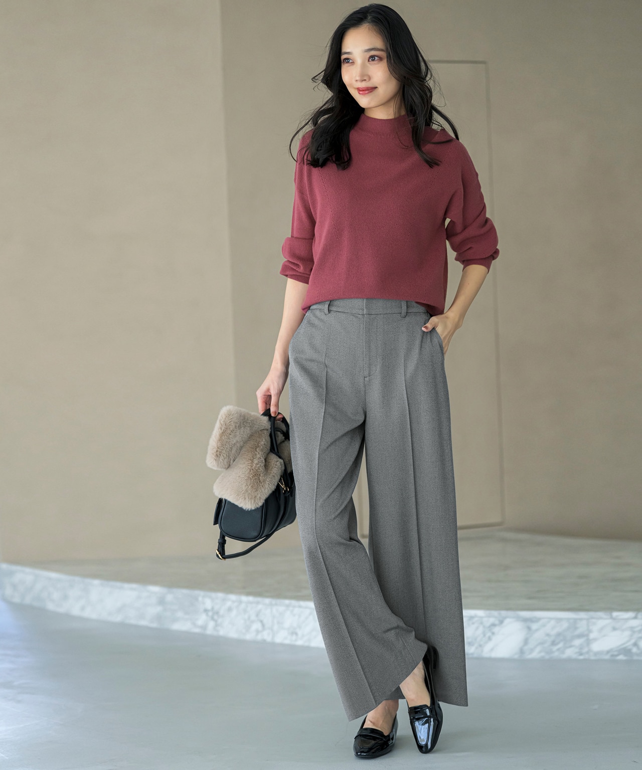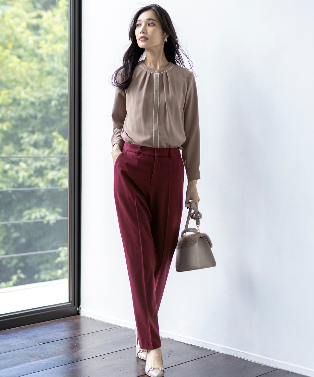すらりとしたシルエットを演出するテーパードパンツは、これからの季節に素敵に着こなしたいボリューミーなニットやアウターと合わせても”ぼんやり”せず、洗練された印象に!