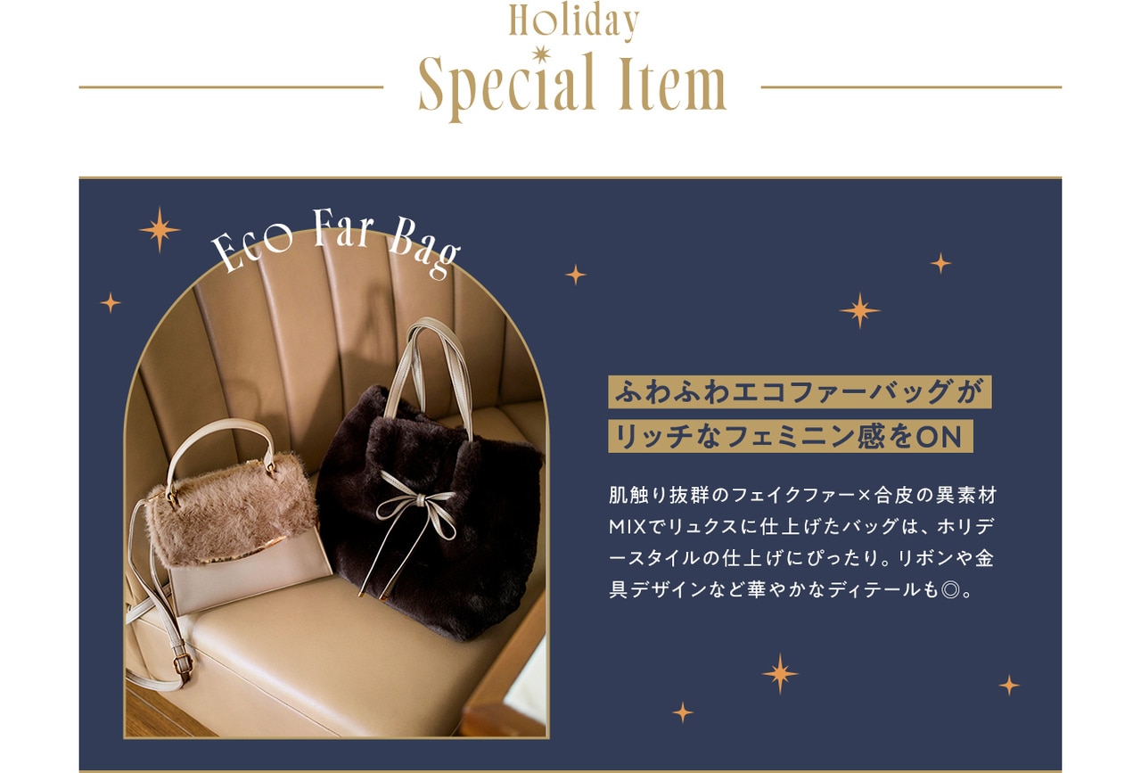 街の煌めきに誘われて、思わず胸が高鳴るホリデーシーズン。着映えニットや上品なワンピース…etc.