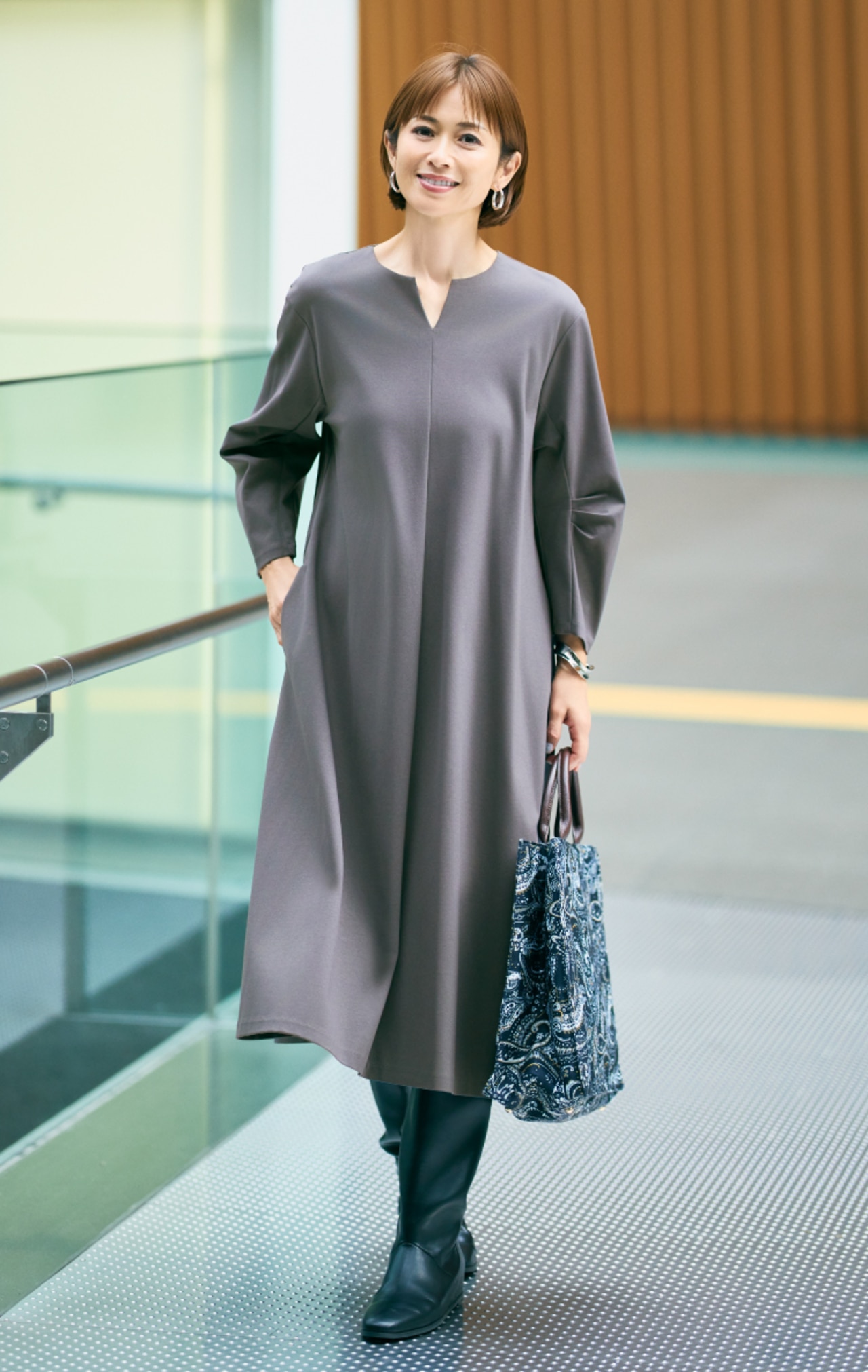 ジャケットを合わせてフォーマルなシーンにも。オンにもオフにも着まわせる汎用性が嬉しい。