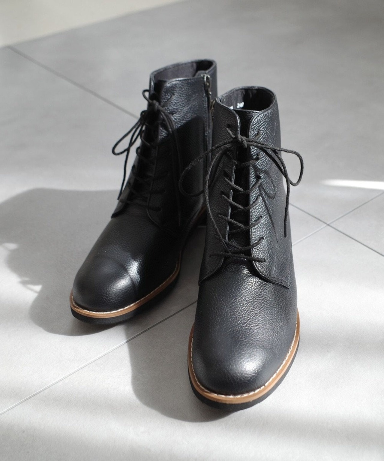 ステッチ入りの底がアクセントになり、レースアップデザインもおしゃれ!硬さがなく足に優しい履き心地です。