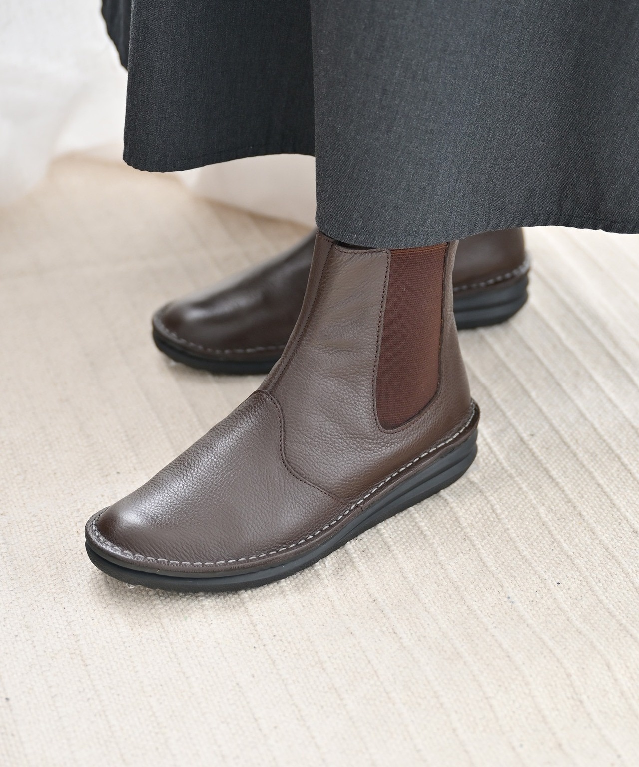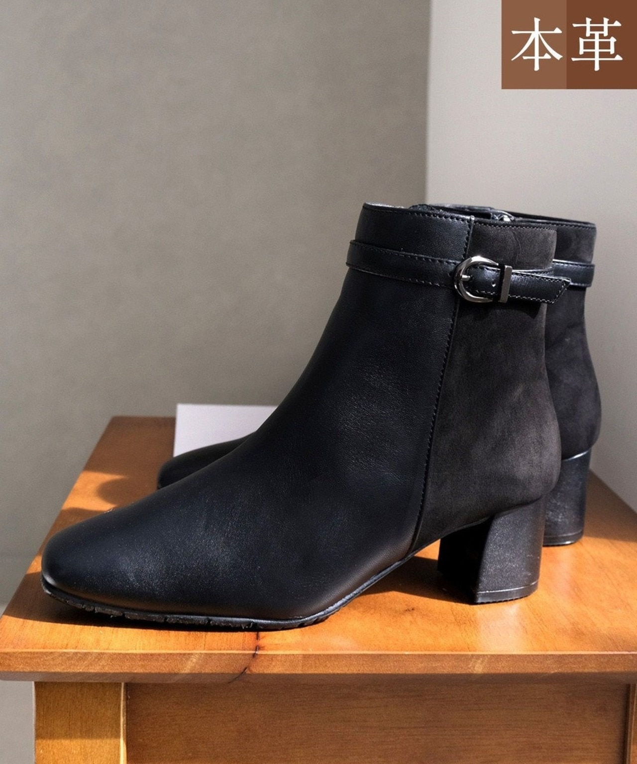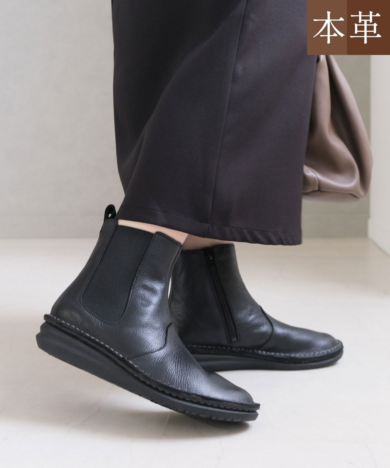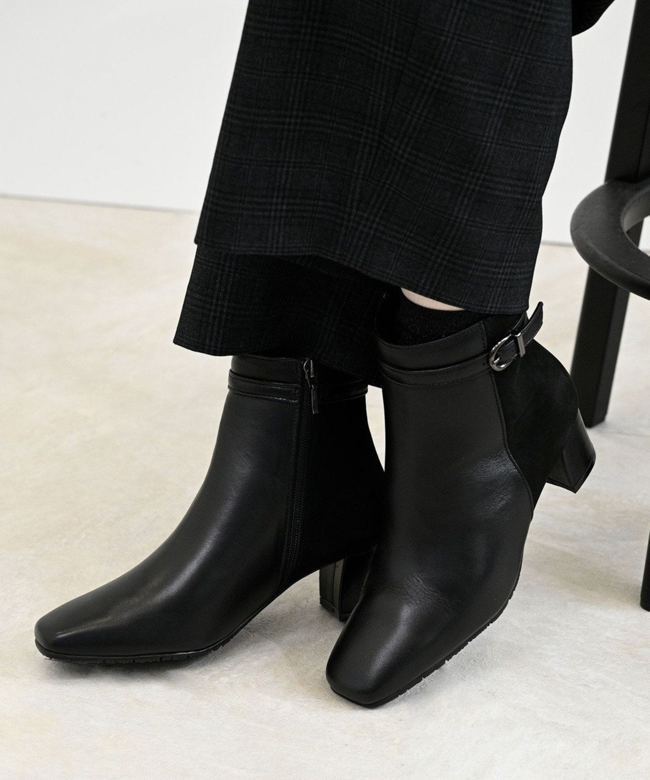 内側ファスナーとローヒールで脱ぎ履きしやすく、一日中快適に歩けます。