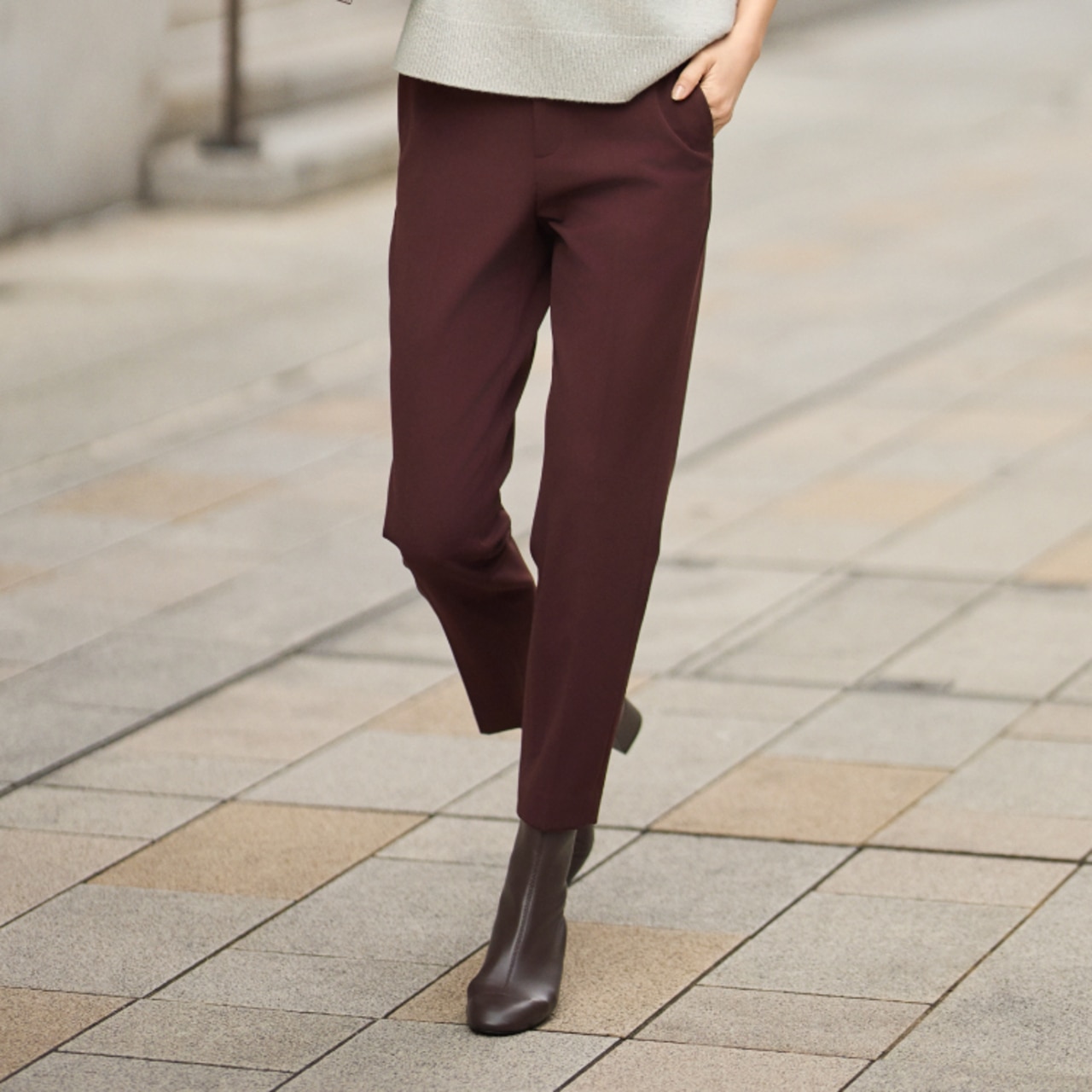 凛とした寒さのなかでも、美しく、軽やかに。裏起毛のテーパードパンツは、暖かさと洗練をひとつにした大人のための"名品ボトム"。適度なハリとキックバック性の高いストレッチ素材で穿き心地もリラクシーに。
