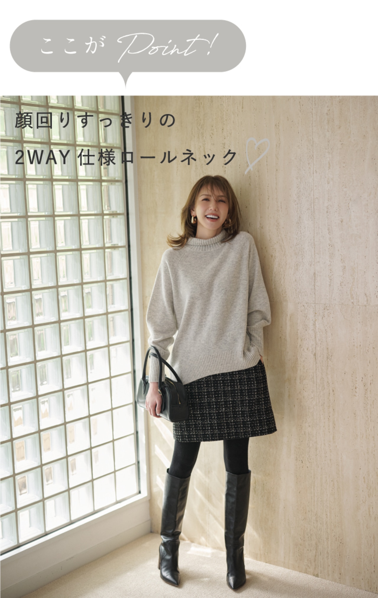 ベーシックカラー派には優しい印象のグレーがおすすめ。組曲ならではのカラー使いで女性らしさをキープ。シックでも華やぐツイードスカートを加えて、今年らしいモノトーンスタイルを楽しむ。