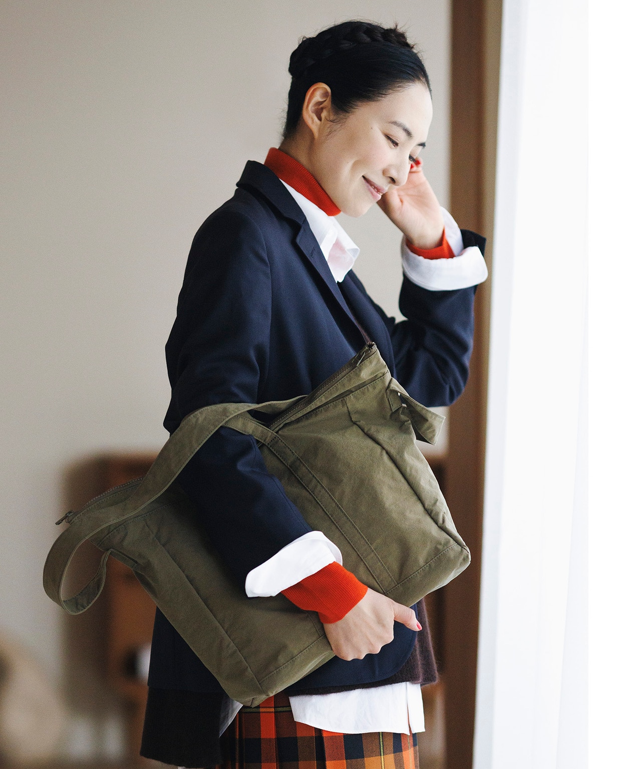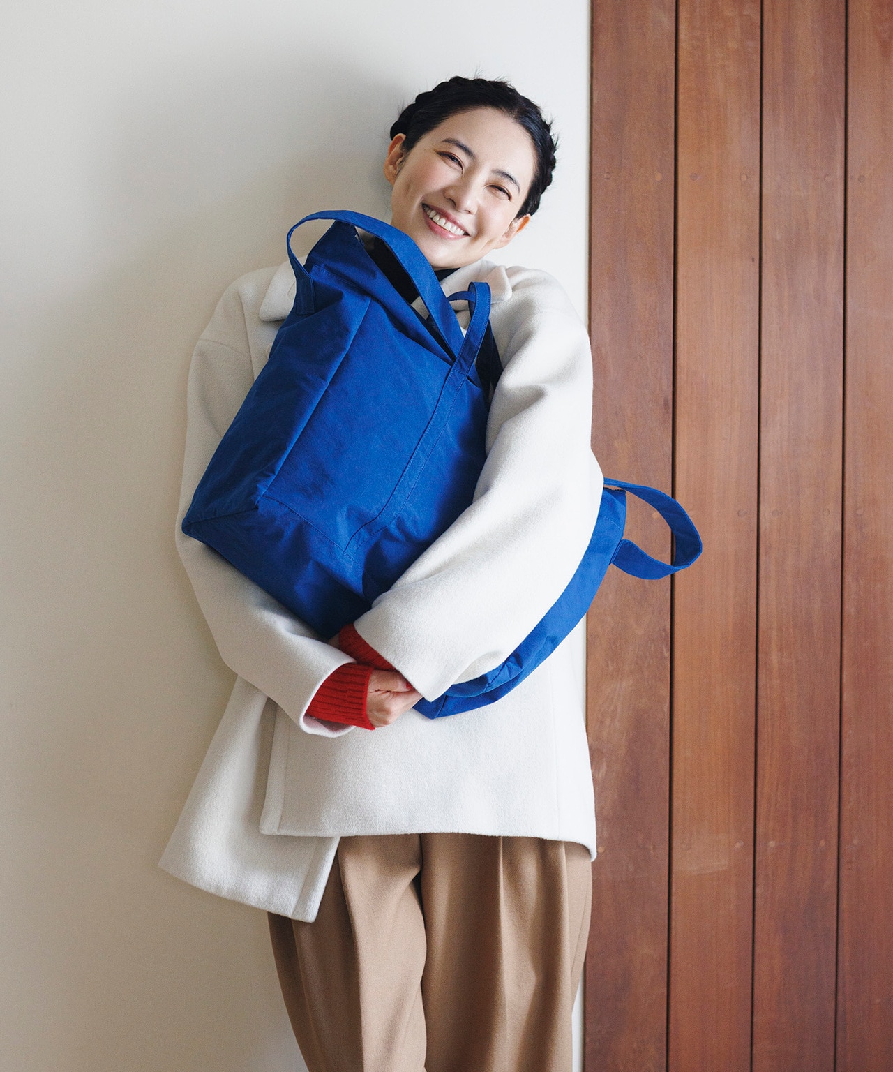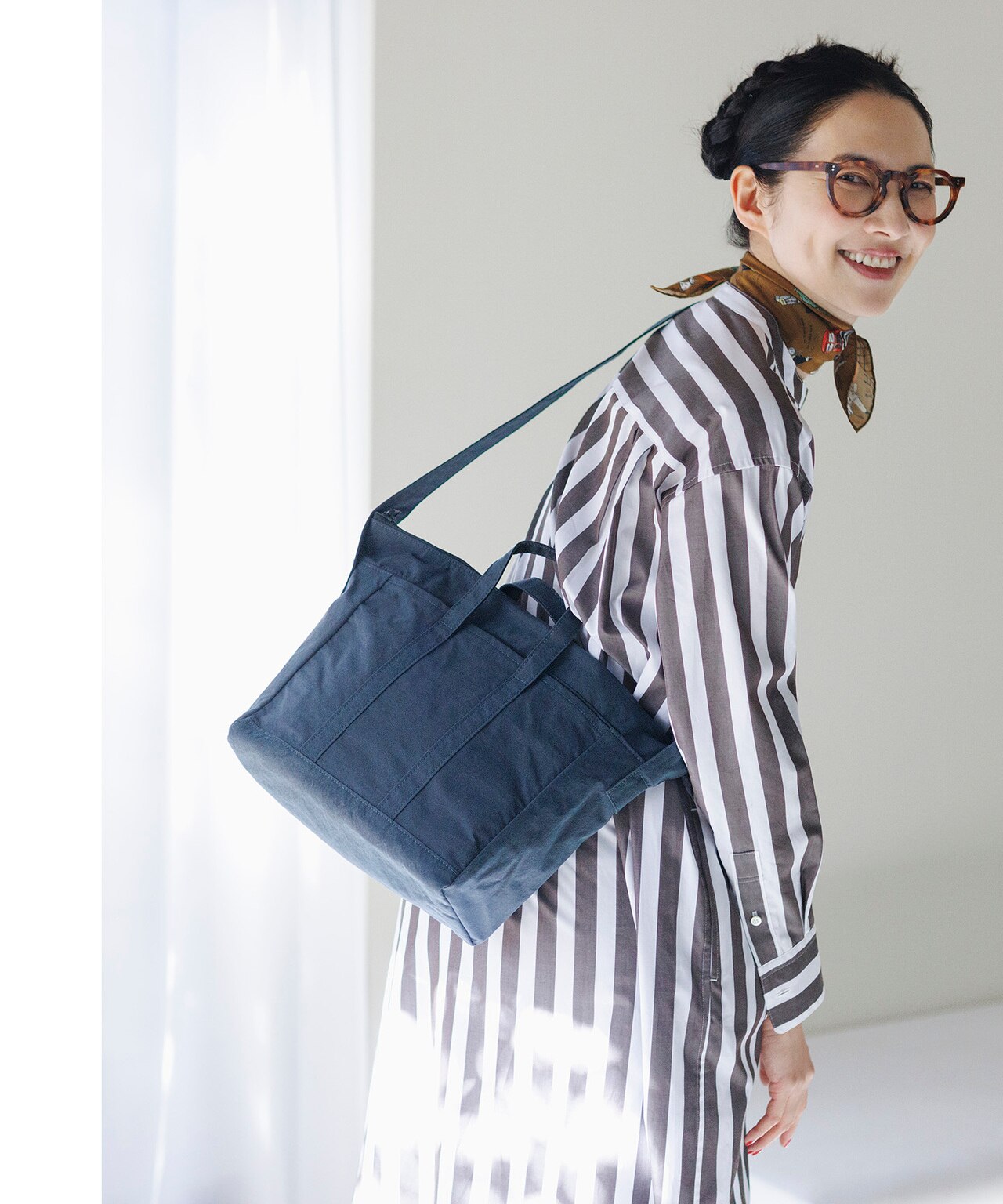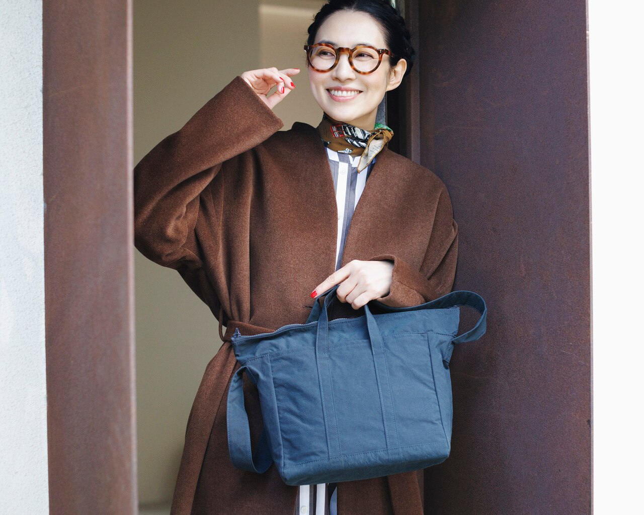 〈NIZYU KANO〉のこれまでのトートバッグと異なり、きちんと自立してくれるため荷物の出し入れをしやすいのがポイント。
