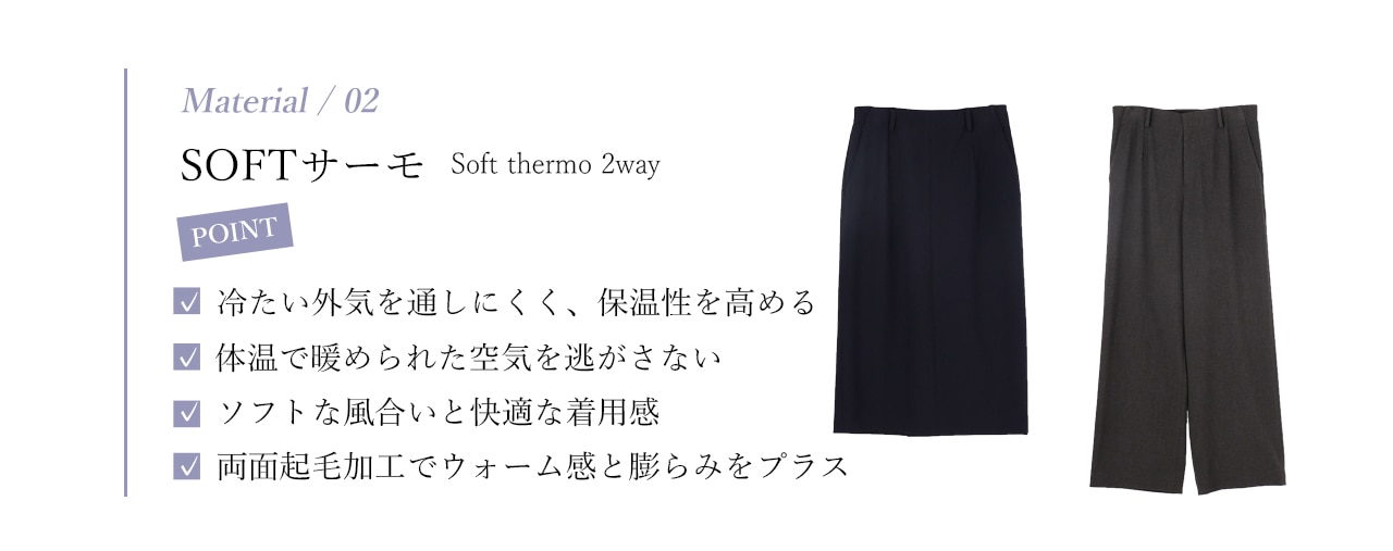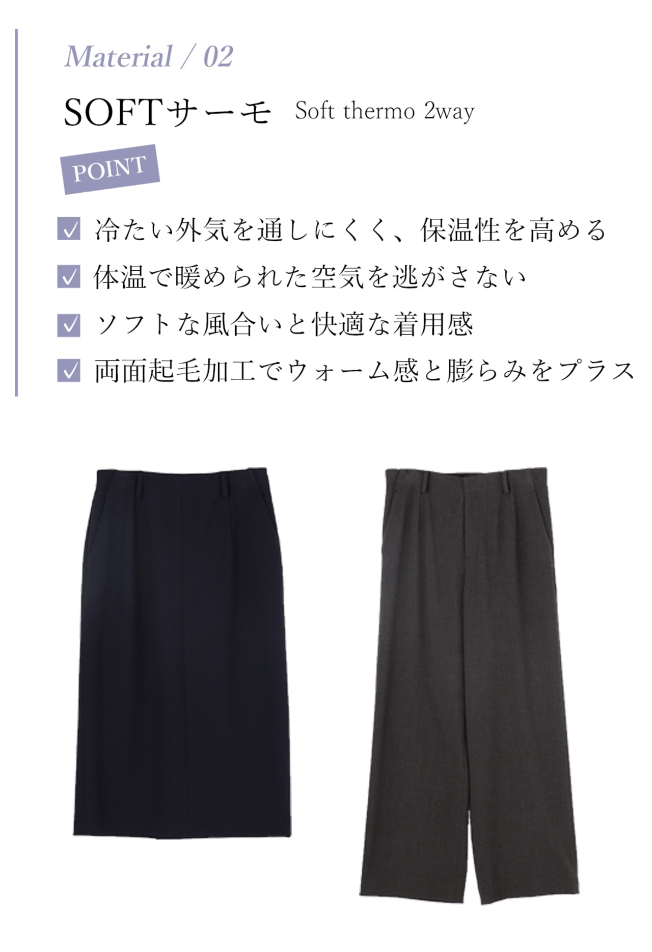 今回は、「裏起毛」「SOFTサーモ」「中綿」の3つのあったか素材を軸に据えた、おしゃれと暖かさを叶える着こなしをご紹介します。