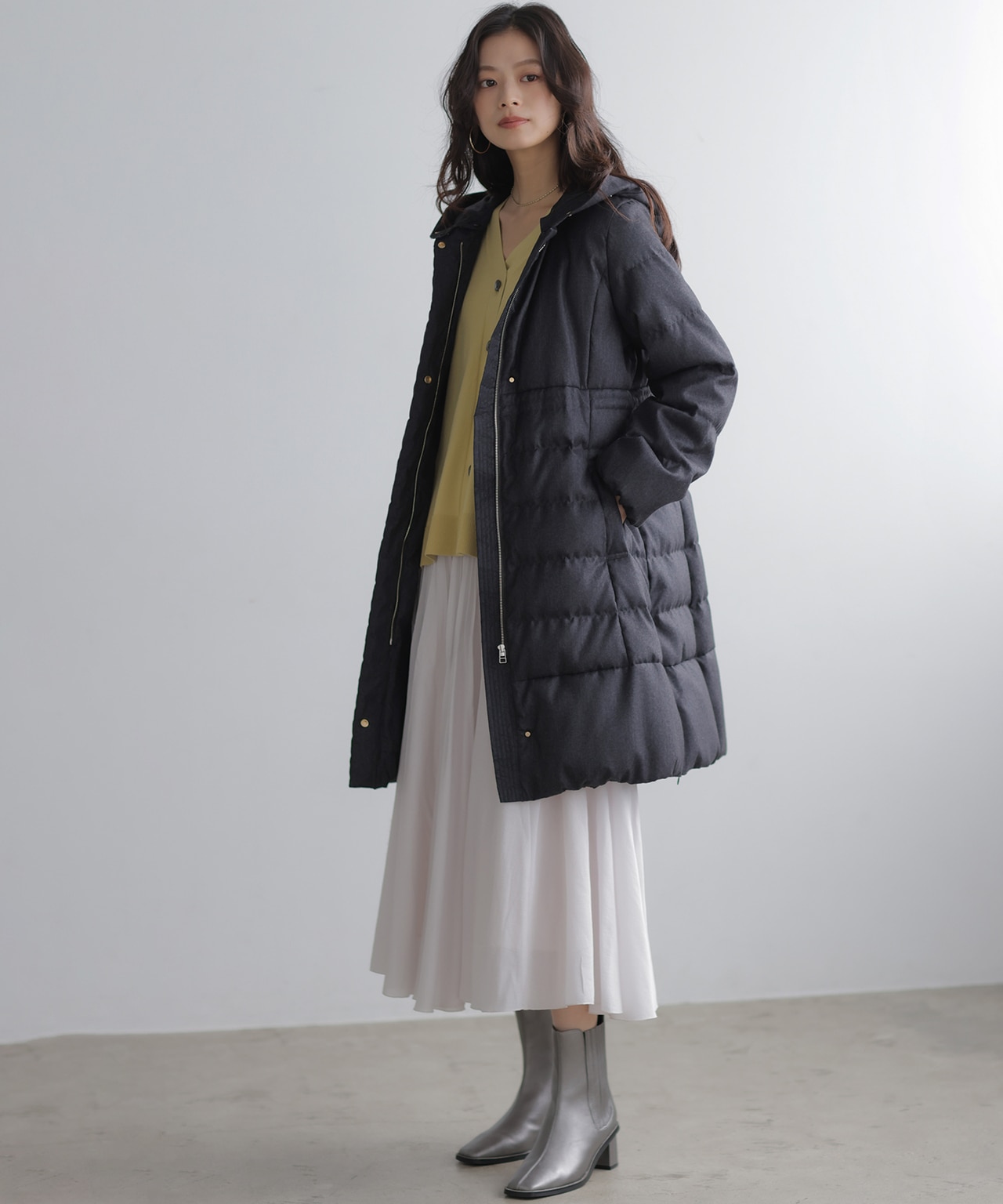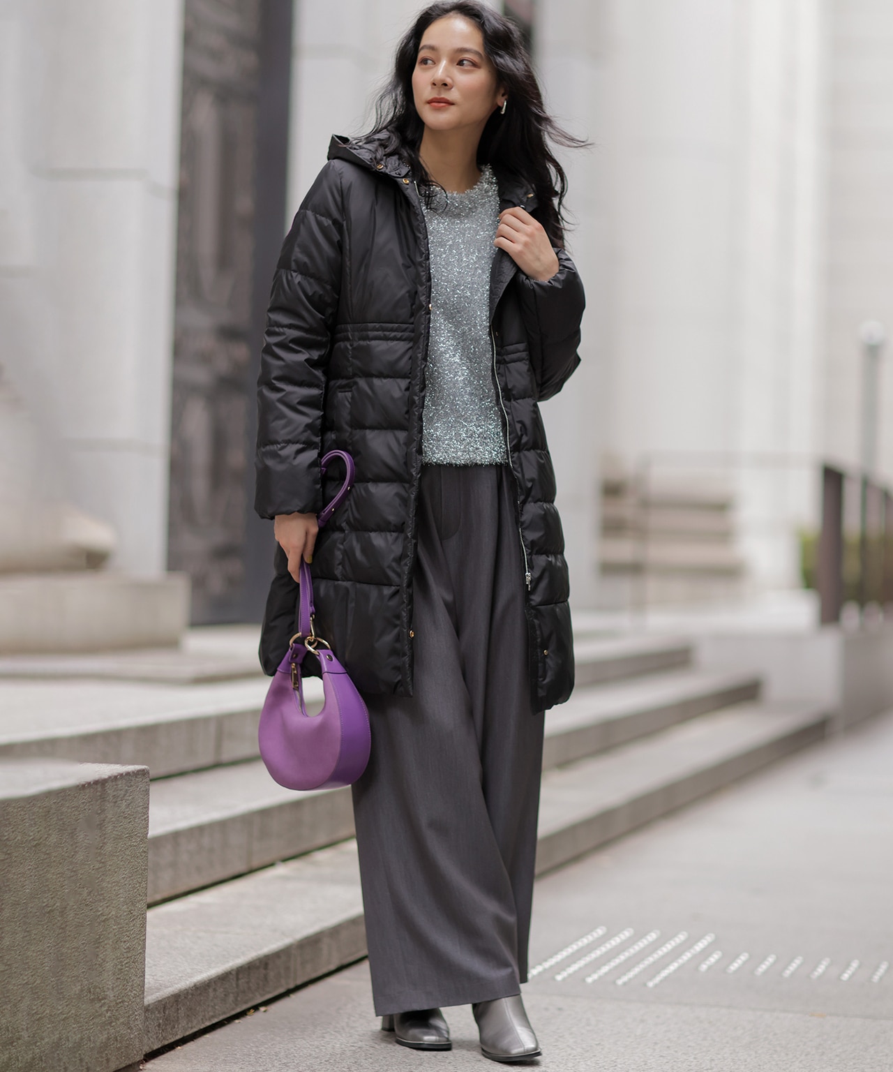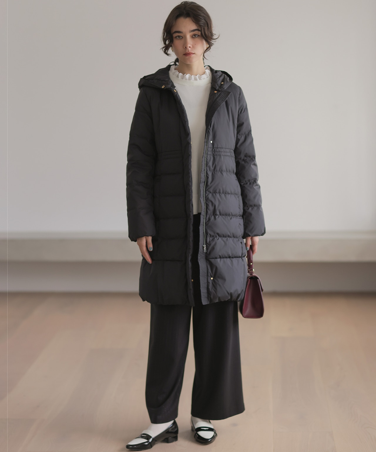 数年前にも購入してシルエットがとても気に入っていたのですが、当時のものはフード一体型だったので、今回フードが取り外せるこちらのダウンを。フードがない方がマフラーやストールを巻きやすく、エレガントに見えるので、とても気に入りました。ファスナーの上げ下げも改善されていたので良かったです。