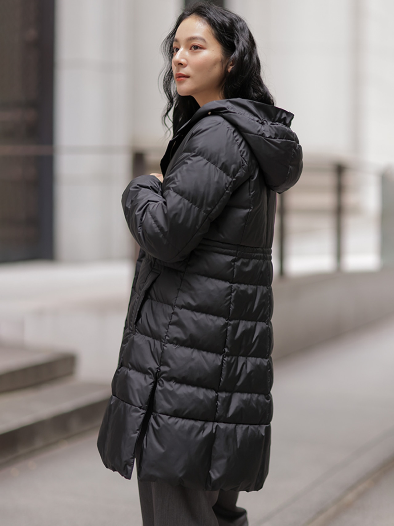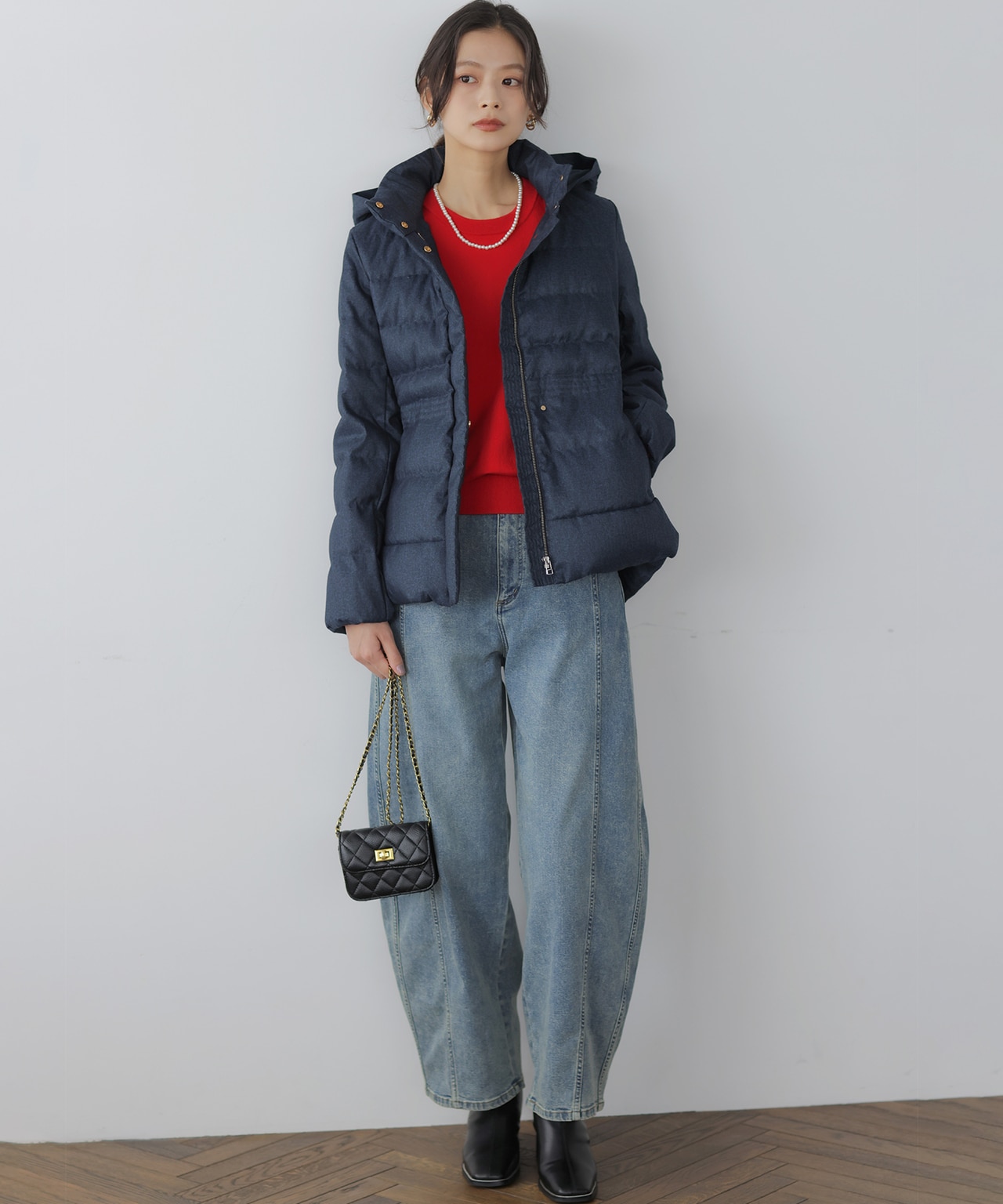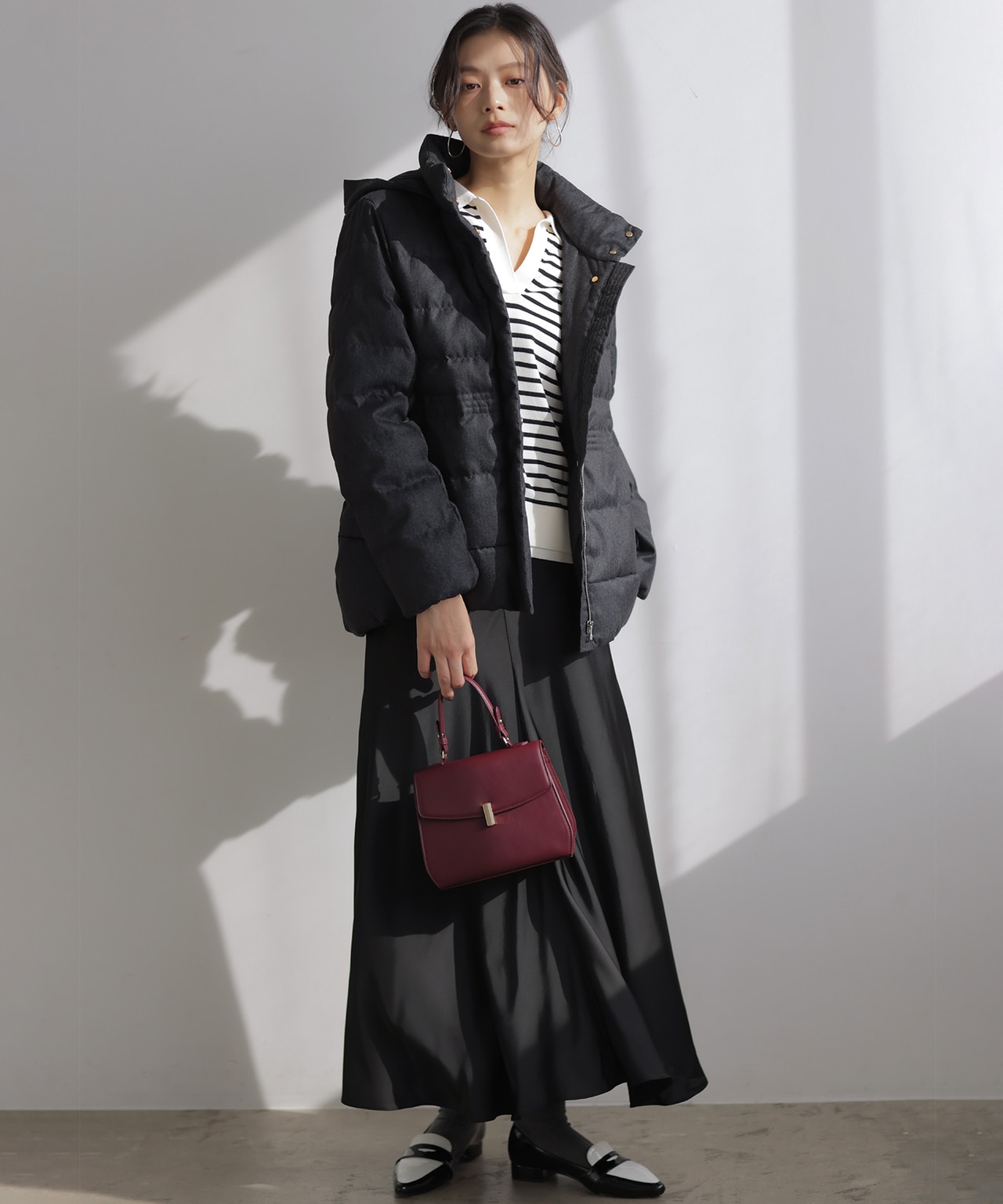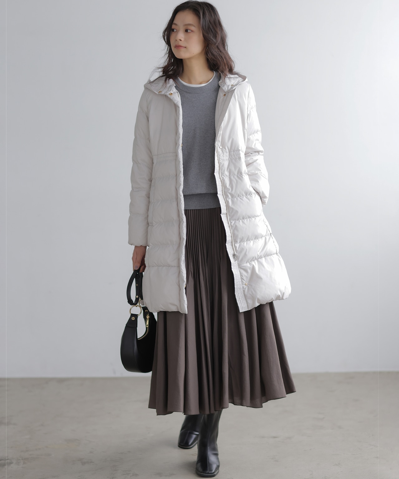 数年前にも購入してシルエットがとても気に入っていたのですが、当時のものはフード一体型だったので、今回フードが取り外せるこちらのダウンを。フードがない方がマフラーやストールを巻きやすく、エレガントに見えるので、とても気に入りました。ファスナーの上げ下げも改善されていたので良かったです。