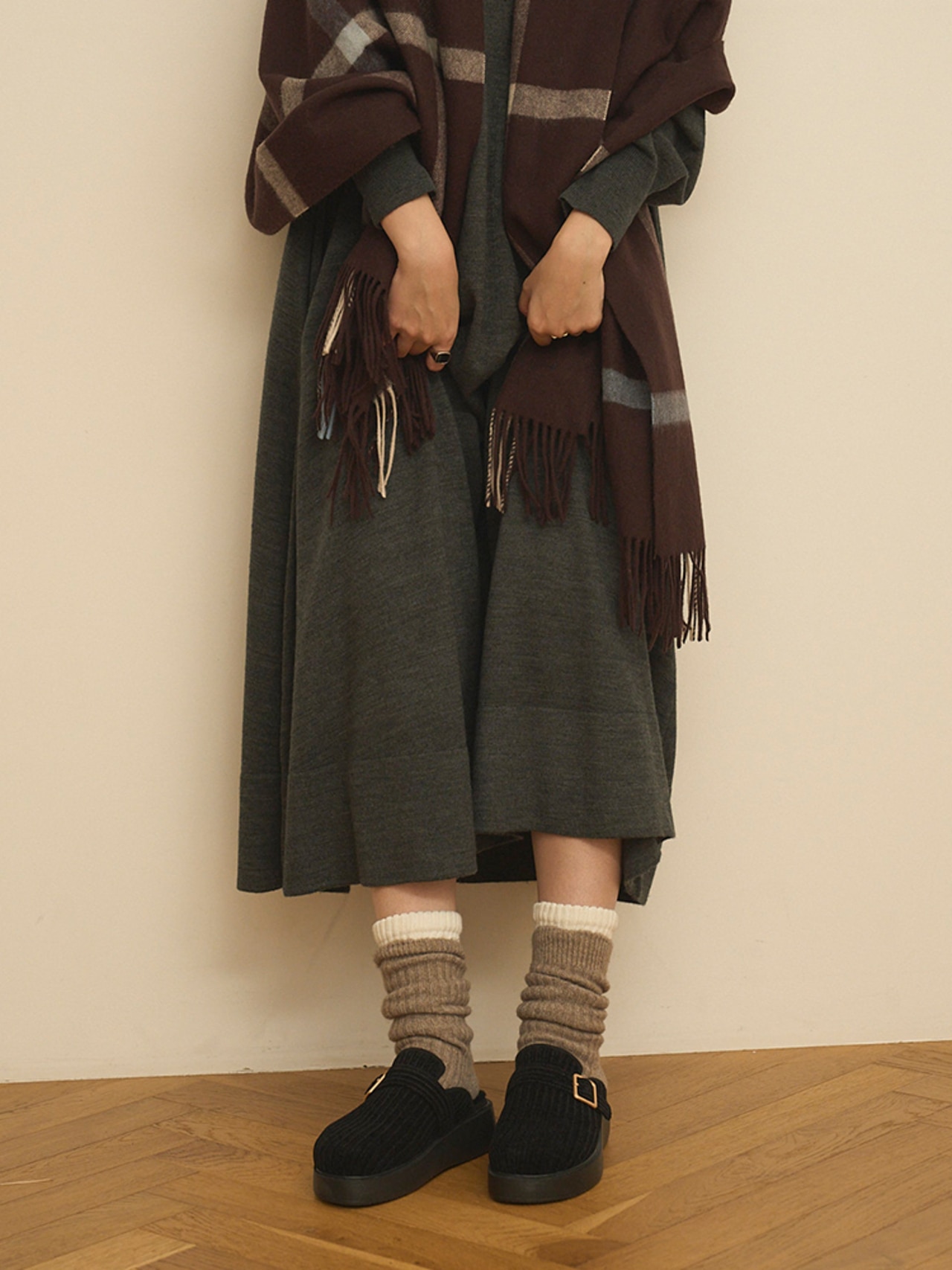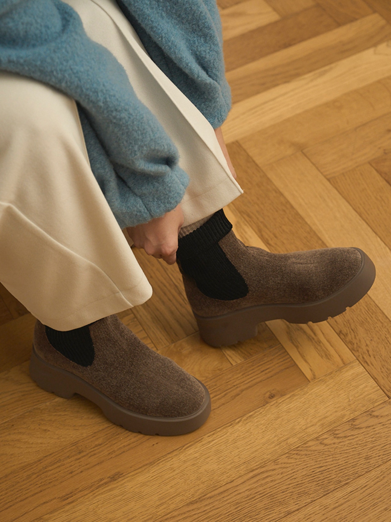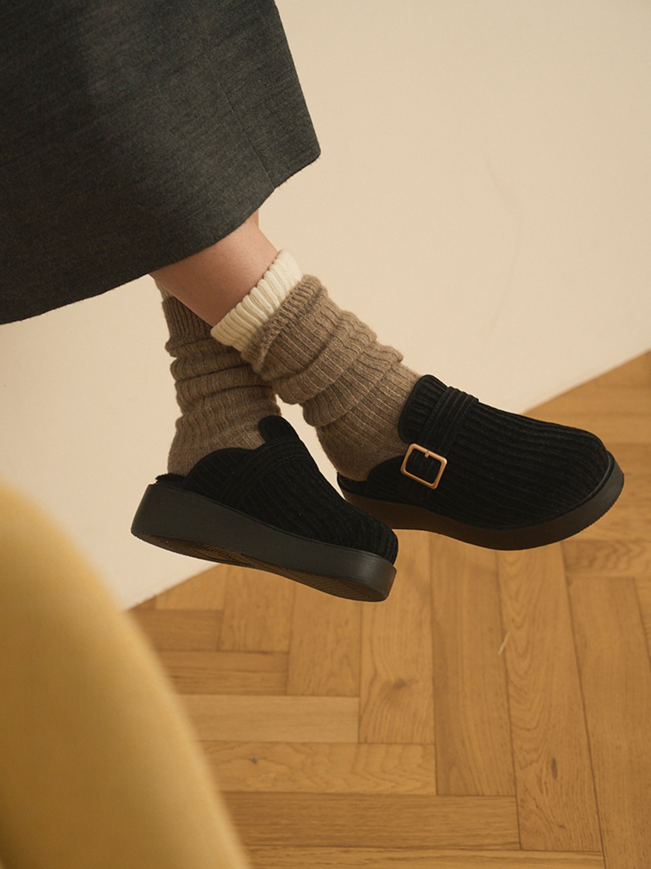 ニットウェアや靴下とも好相性で、寒い季節の心強い味方です。