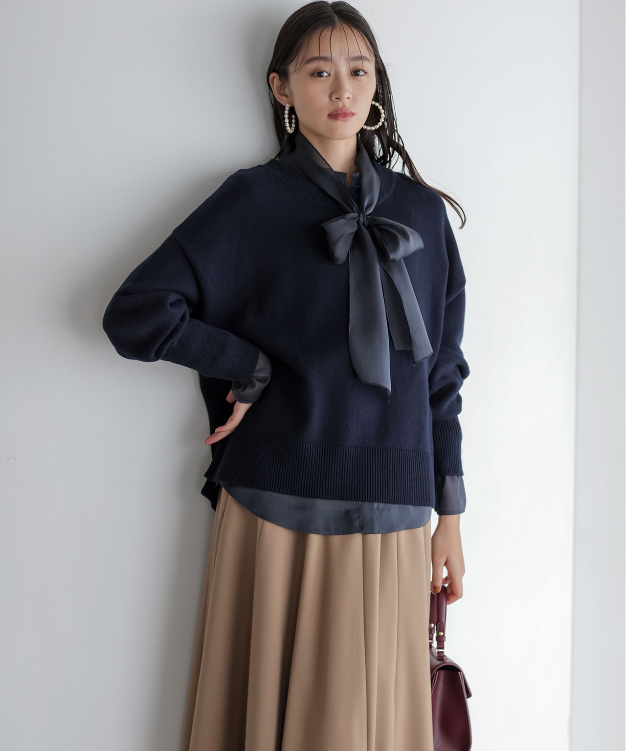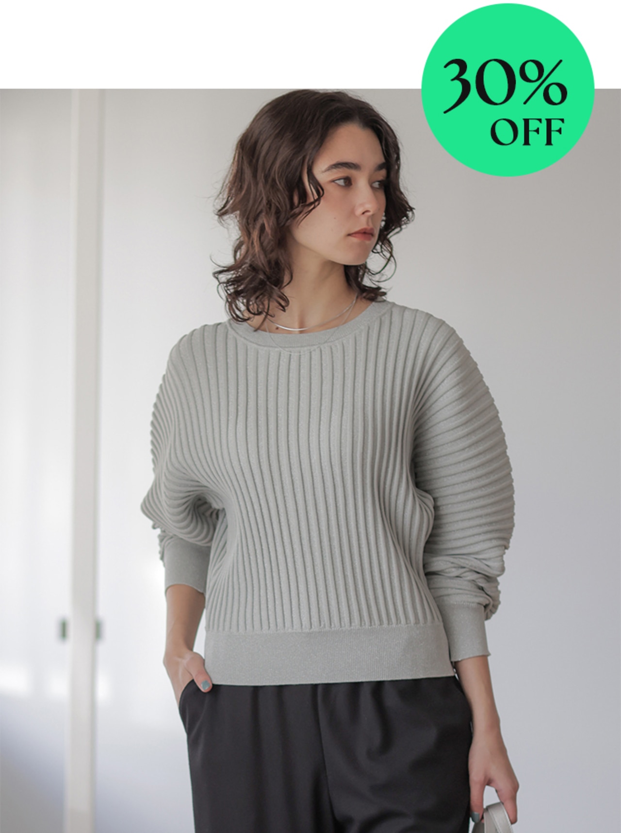 シンプルながら立体的なシルエットでスタイリングを格上げしてくれる映えニット。