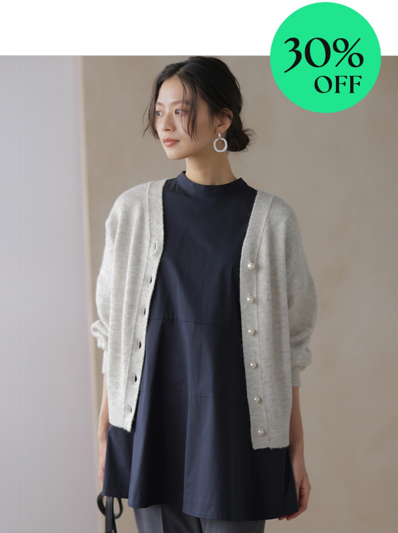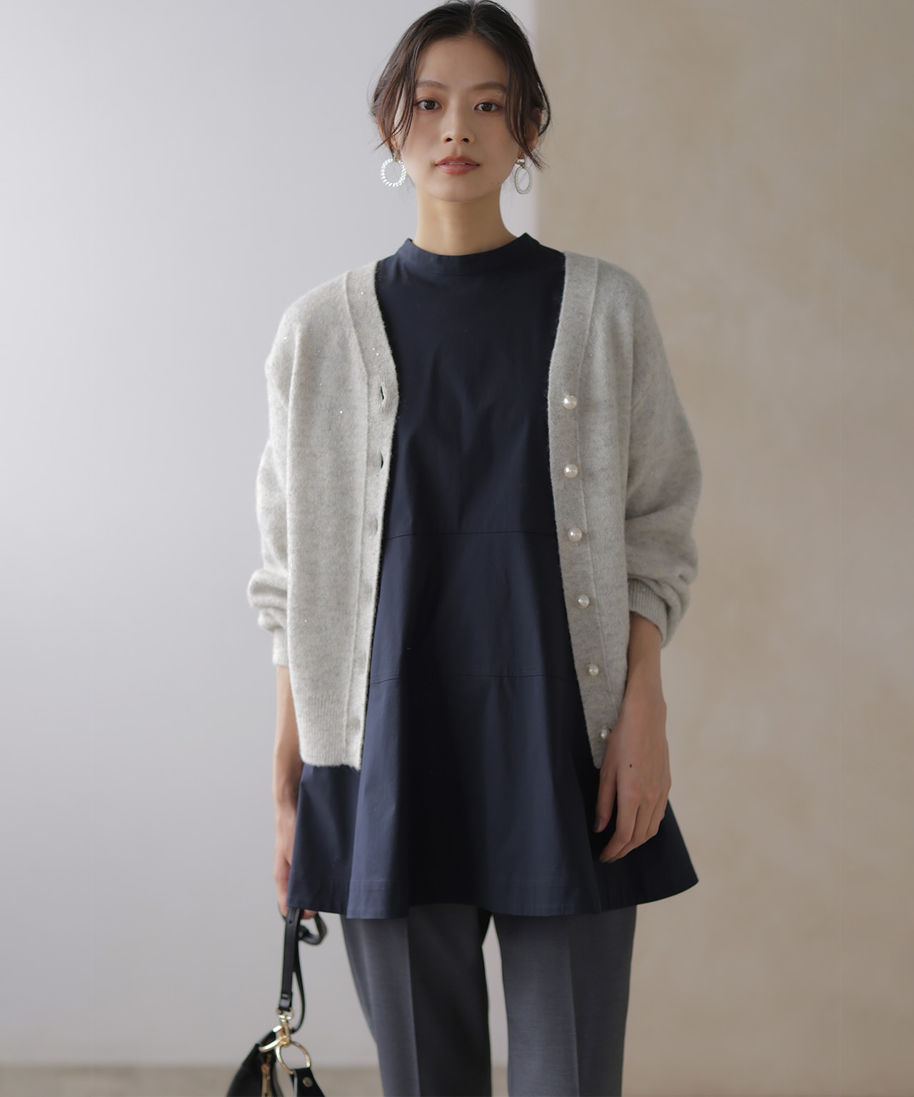 ワンピースにさらっと羽織るカーディガン使用としてはもちろん、首元が開きすぐていないのでプルオーバーとして着用いただくのもおすすめです!