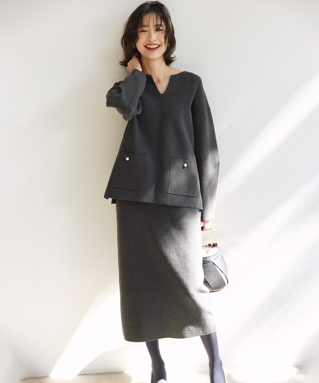 体のラインを拾いすぎない肉感なのでニットアップが苦手な方にもチャレンジしていただきたいアイテムです♪