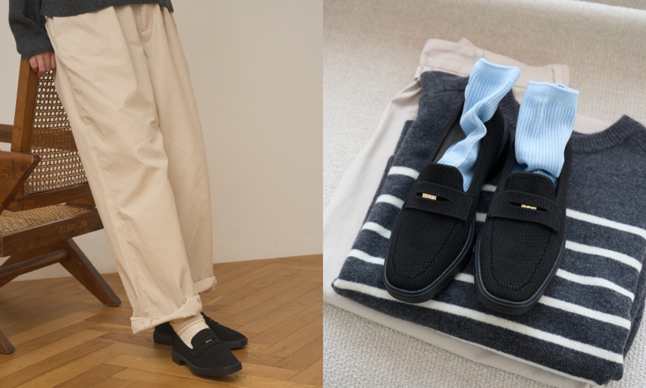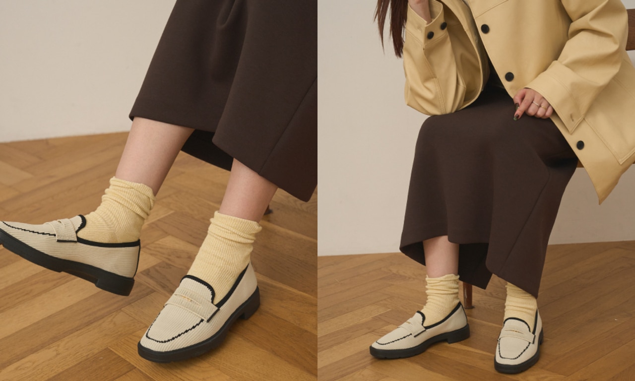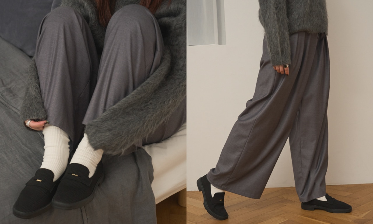 冬の足元に軽やかさと上品さを添える一足、ニットローファー。