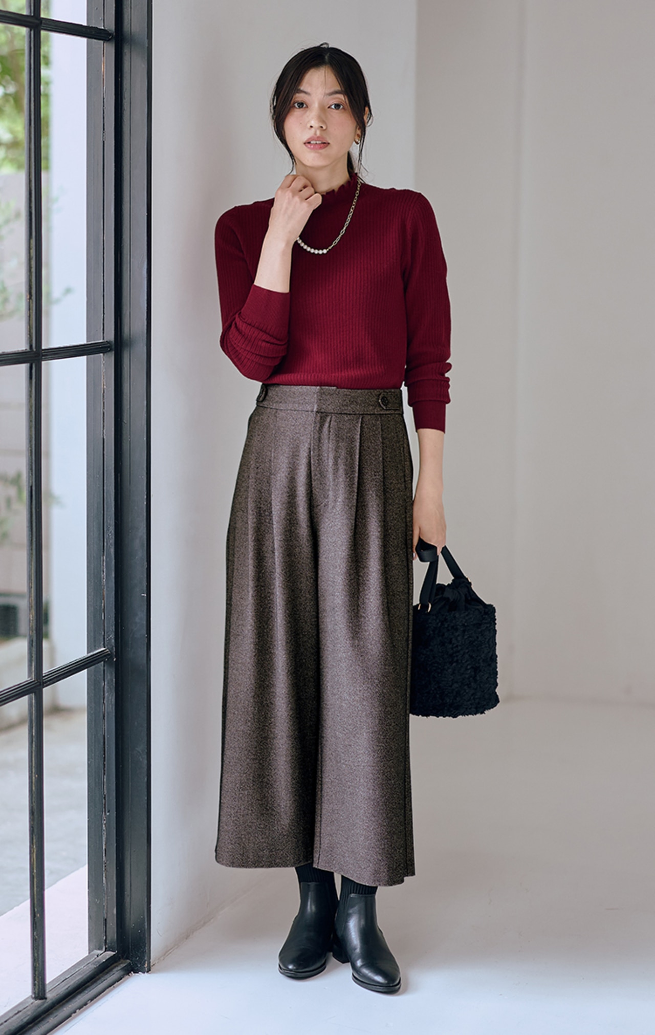 ちょうど良い厚みでレイヤードしやすく、なおかつ程よいサイズ感で体型を拾いすぎず、使いやすい万能アイテムです。フリルネックでシンプルになりすぎないのも人気のポイント。吸湿発熱に優れた素材で、おしゃれと暖かさの両方を叶えます。