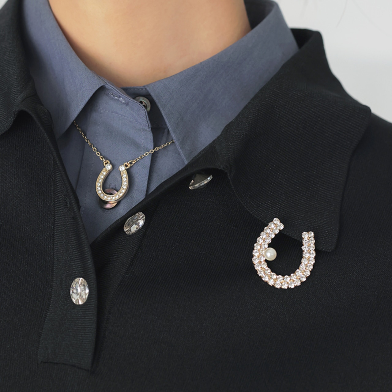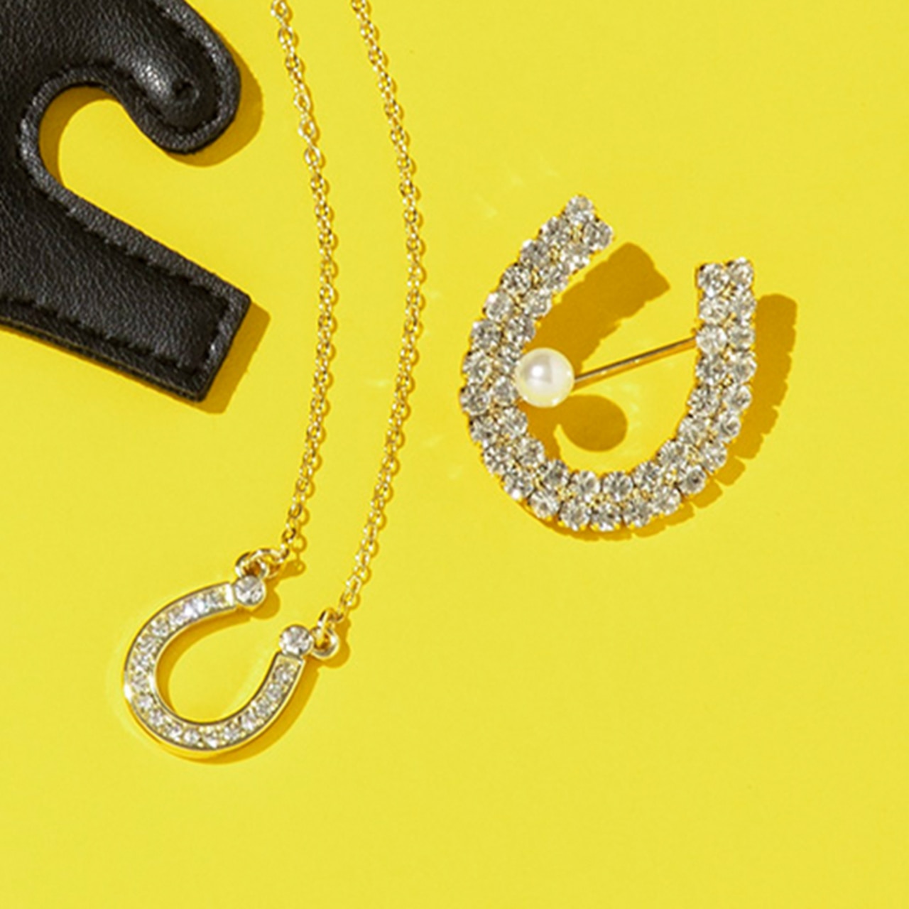 ホースシュービジューブローチ