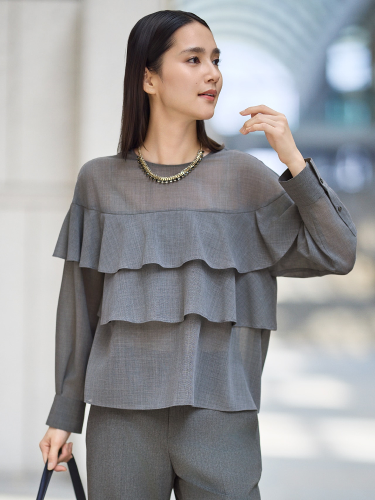 - 【カタログ掲載】シアーソフトシャンブレークロップド丈 ブラウス/自由区