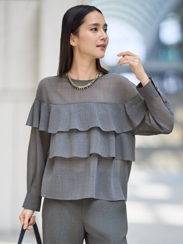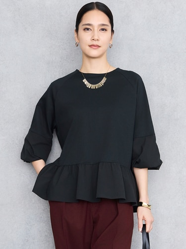 - シアーソフトシャンブレーペプラム ブラウス/自由区