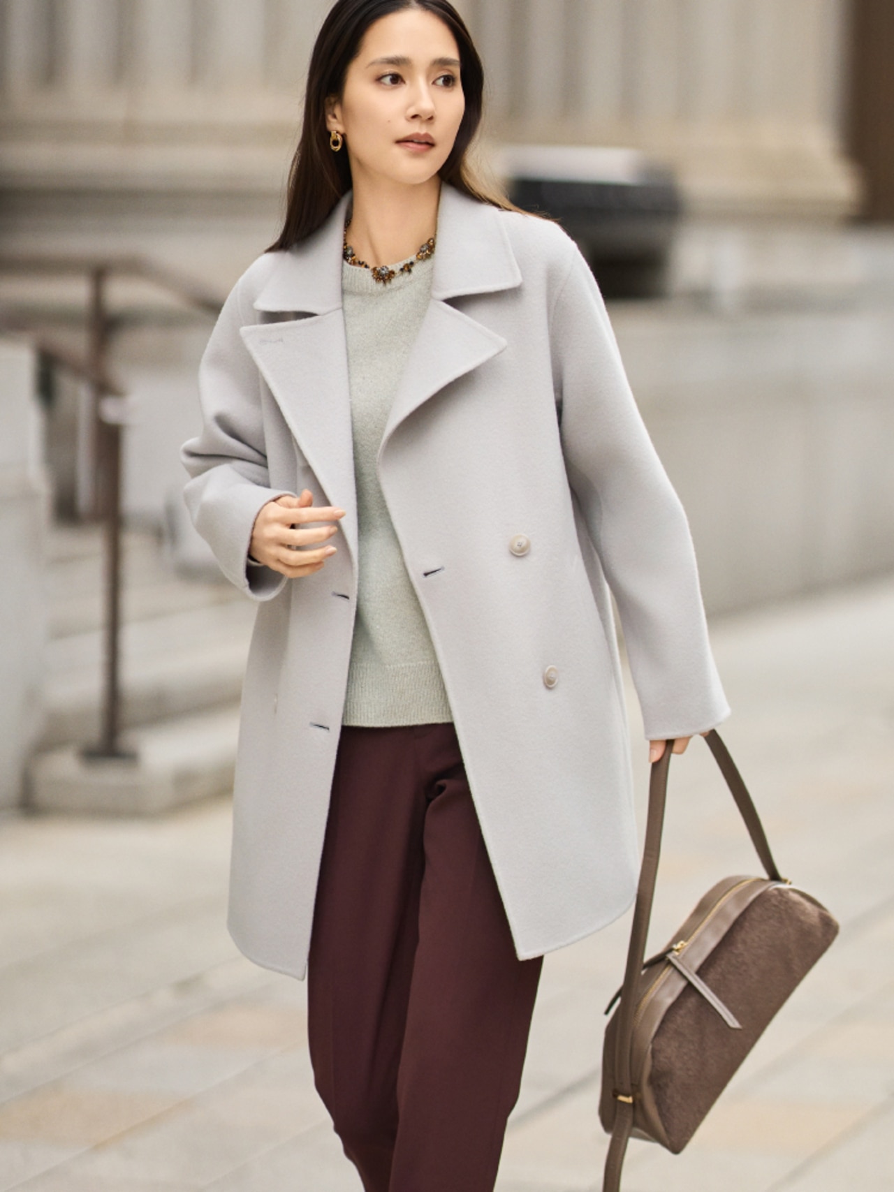- 【カタログ掲載】ウールリバーチェック柄ダブルブレスト コート/自由区