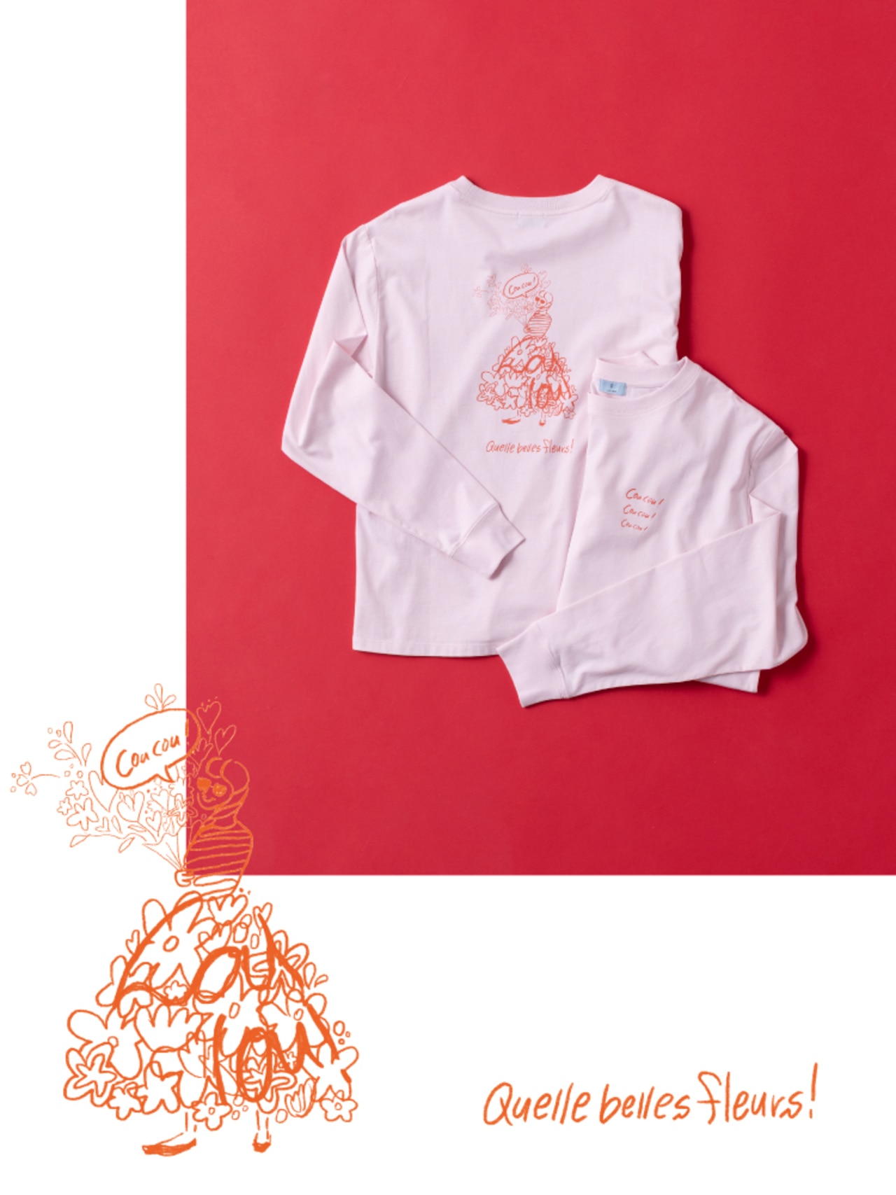 ユーモラスでキュート、ハッピーでいてどこかシニカルなイラストが可愛いアーティストne22co氏。今回依頼したのは、水彩画で表現した花束と、コレクションテーマの文字とイラスト。茶目っ気たっぷりな世界観が出来上がりました。